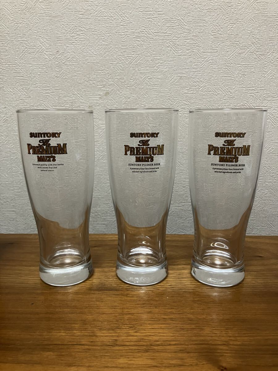 ※サントリーザプレミアムモルツのロゴ入りのグラス3個セットです。