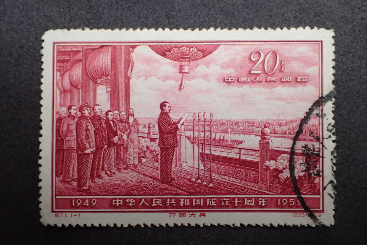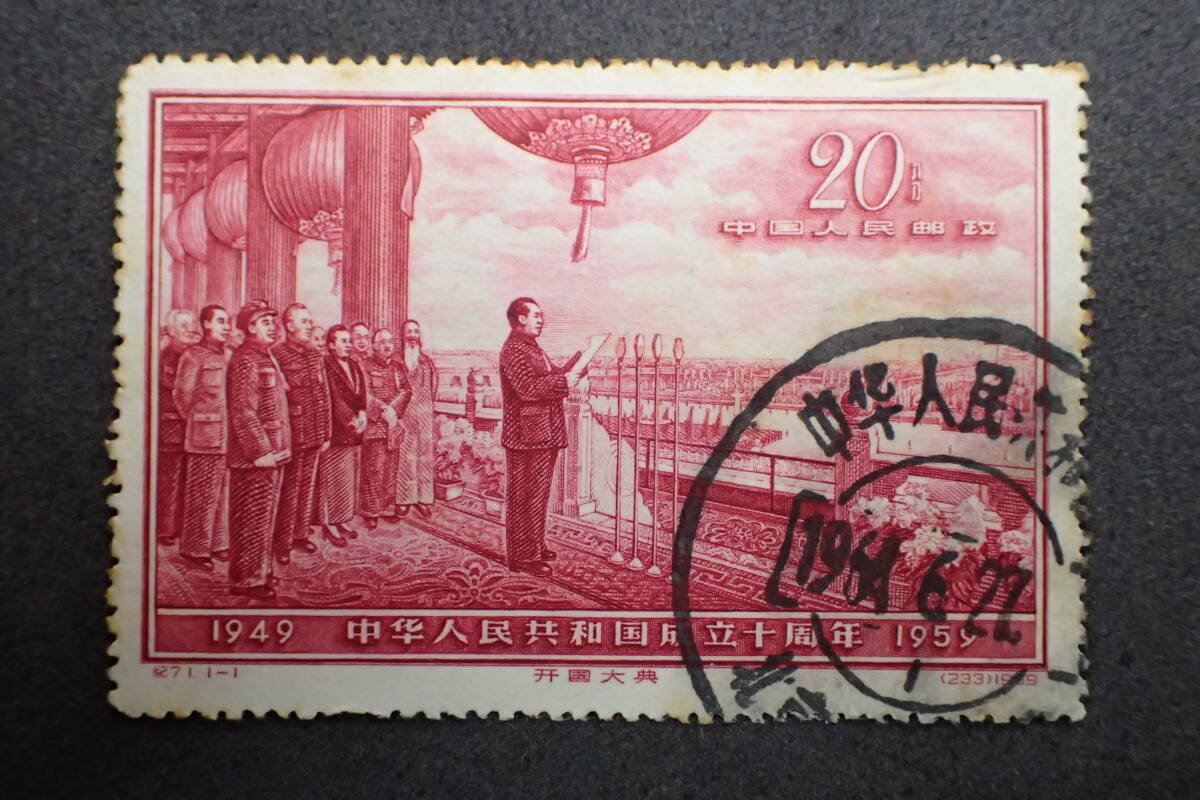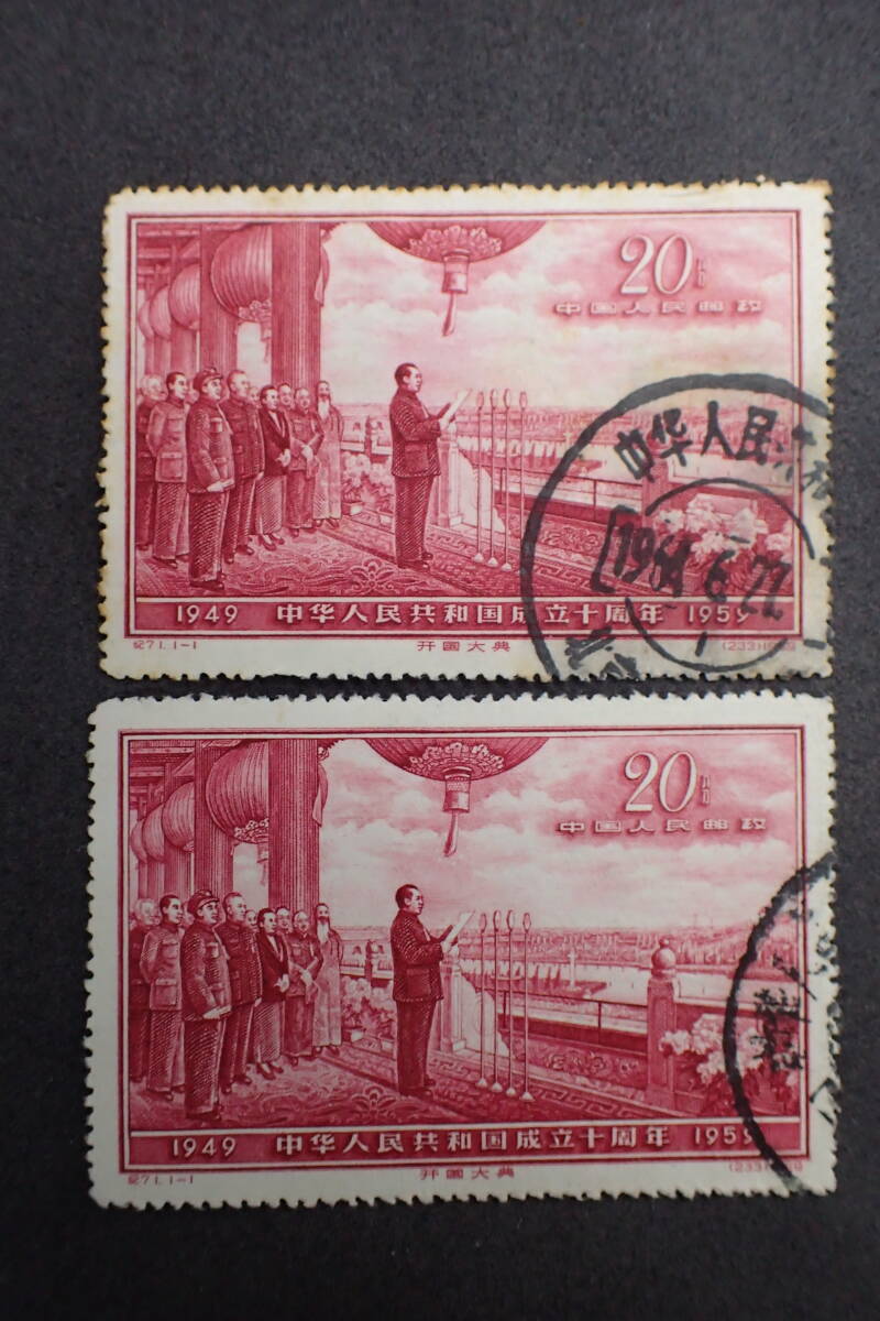 ◆希少◆中国切手 1959年 紀71 10周年シリーズ バラ計2枚 注文消 使用済◆