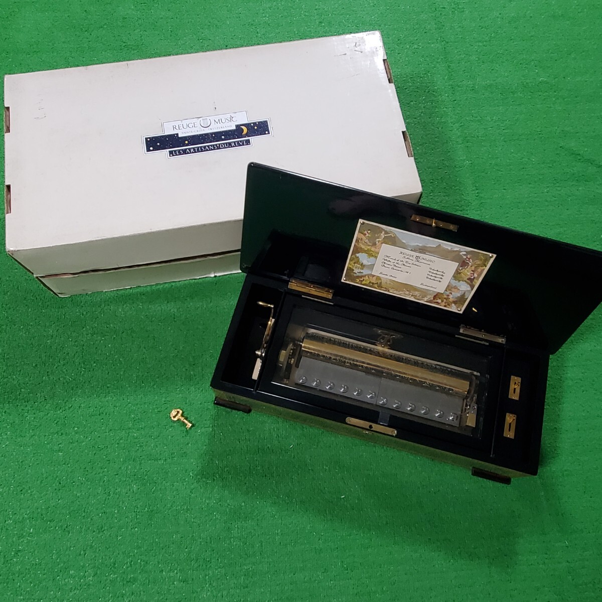 REUGE リュージュ オルゴール 動作確認済み 音出し確認済み 4曲 MUSIC BOX 鍵付き 希少品 最高級 象嵌
