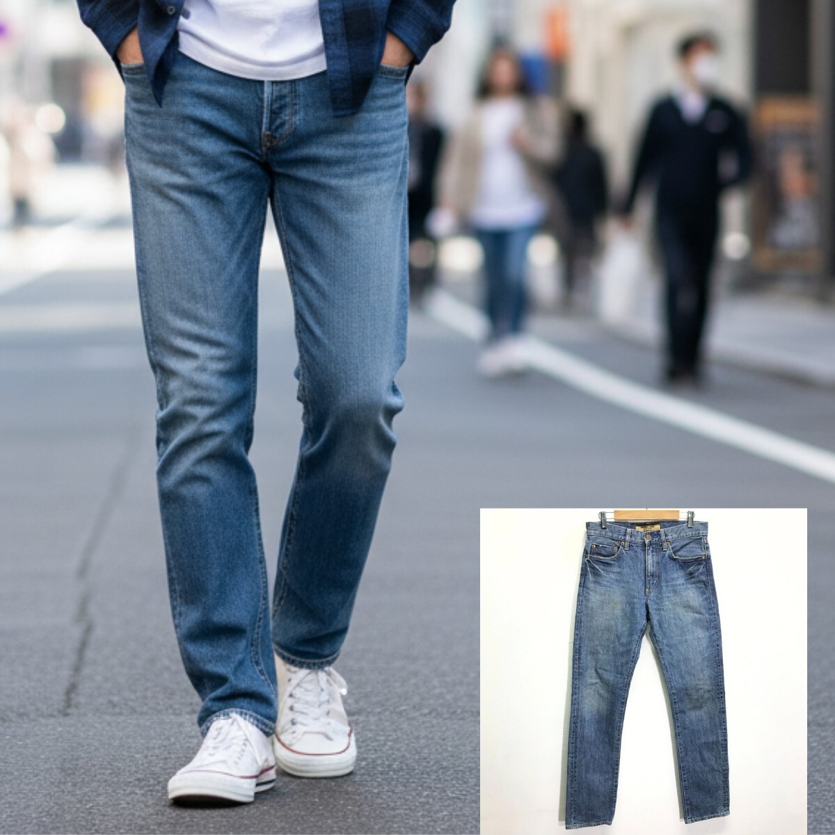 この度は私の商品をご覧頂きありがとうございます。頻繁に商品出品致しますのでフォロー頂けたら嬉しいです。 サイズ: w28 平置き時: 腰幅38㎝、全長106㎝、股下81㎝、裾幅18㎝。 ※素人採寸考慮 人気品番S-001◎GOODシルエット◎【UNIQLO ユニクロ】のスリムフィットストレートジーンズになります!!オシャレなユーズド加工!!細すぎないちょうどいいシルエット!!脚長効果も抜群です!! 薄いよごれはありますが、ビンテージの雰囲気があり逆にGOODだと思います。 他にも沢山出品しておりますので下のマイオークションからチェックしてみてください!当方の商品はすべて一点ものですので買わなければもう手に入りません!完全売切り!この機会がラストチャンス! 【注意】 発送方法は発送時トラブル防止の為、 【飛脚宅配便 60サイズ 2kg】 発送のみです。福島県から発送致します。正確な送料は佐川急便HPから確認ください。離島、沖縄は除く。 商品管理上、当方商品すべて出品後包装済みの為、其々の発送となりますので他の商品との同梱不可をご注意ください。 【画像について】 太陽光や照明、お使いのデバイスにより、カラーや質感の見え方は異なります。 着用画像についても、質感、着丈、柄、カラーやシルエット等は実物と異なる場合がございます。コーディネートや着こなしの参考として是非ご活用ください。 実物の写真と採寸を掲載しておりますので、ご購入の際は必ず商品説明欄をご確認ください。 | |||