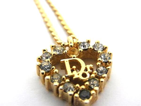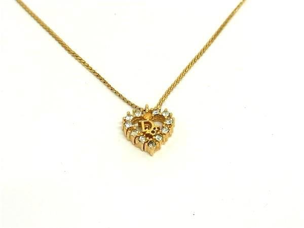1円 ChristianDior ディオール ヴィンテージ ラインストーン ネックレス ペンダント アクセサリー レディース ゴールド系 FV1062