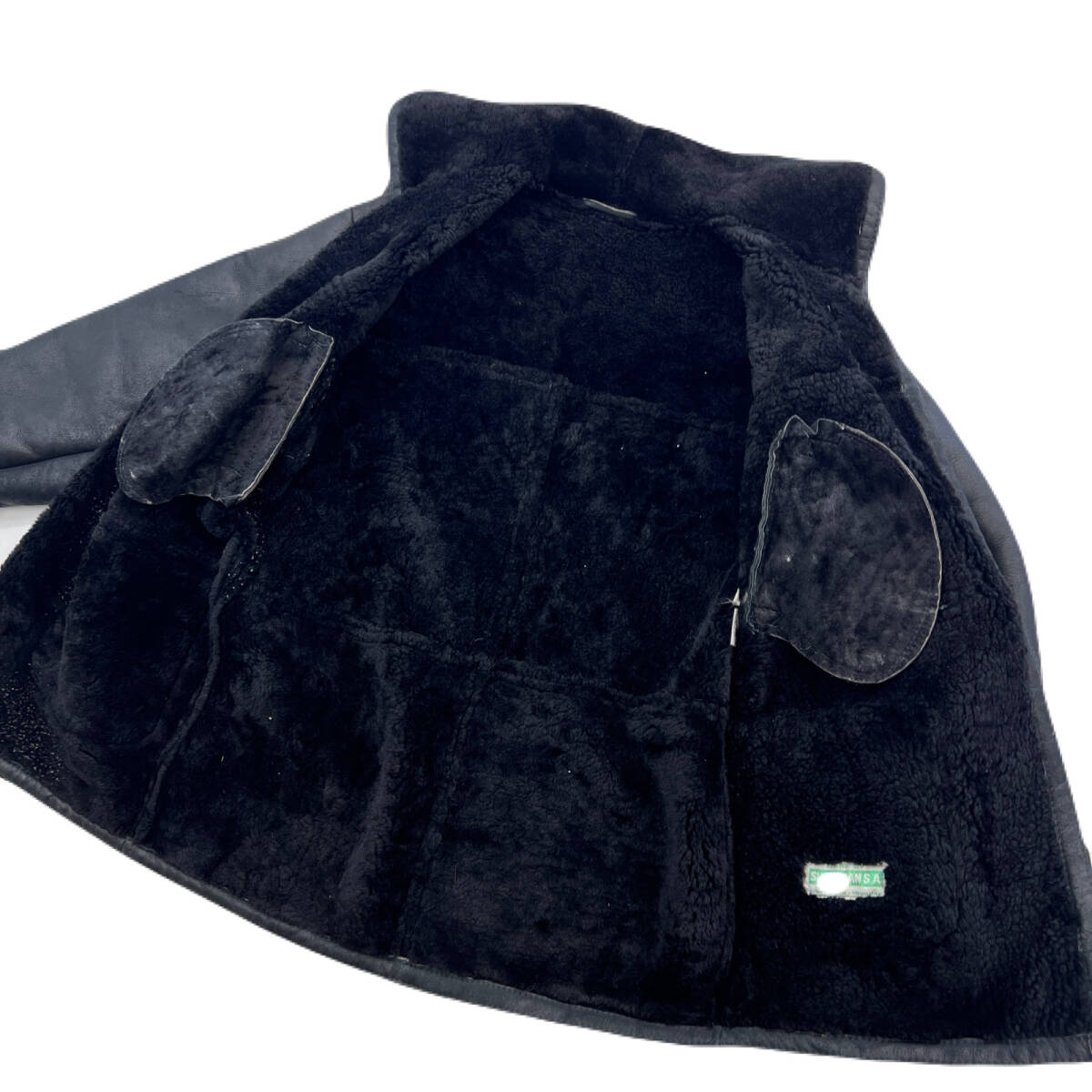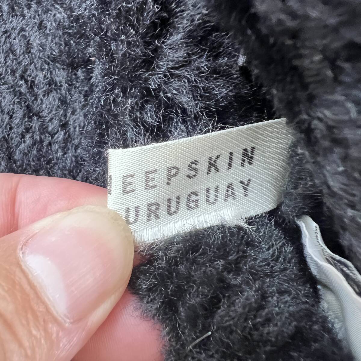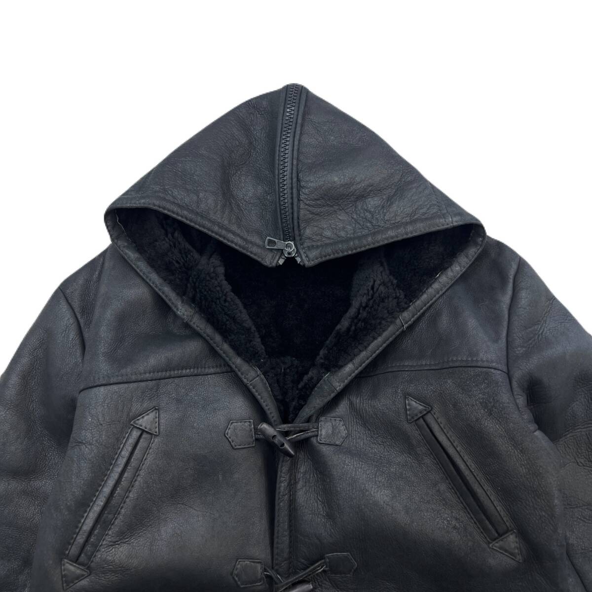 SUPRODAN SA ムートンコート パーカー フードジッパー メンズ Mサイズ 厚手 羊革 ブラック 黒 漆黒 ●BA317