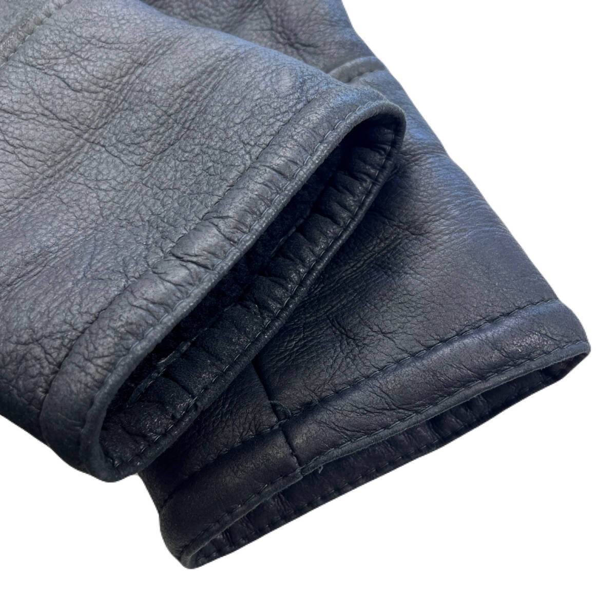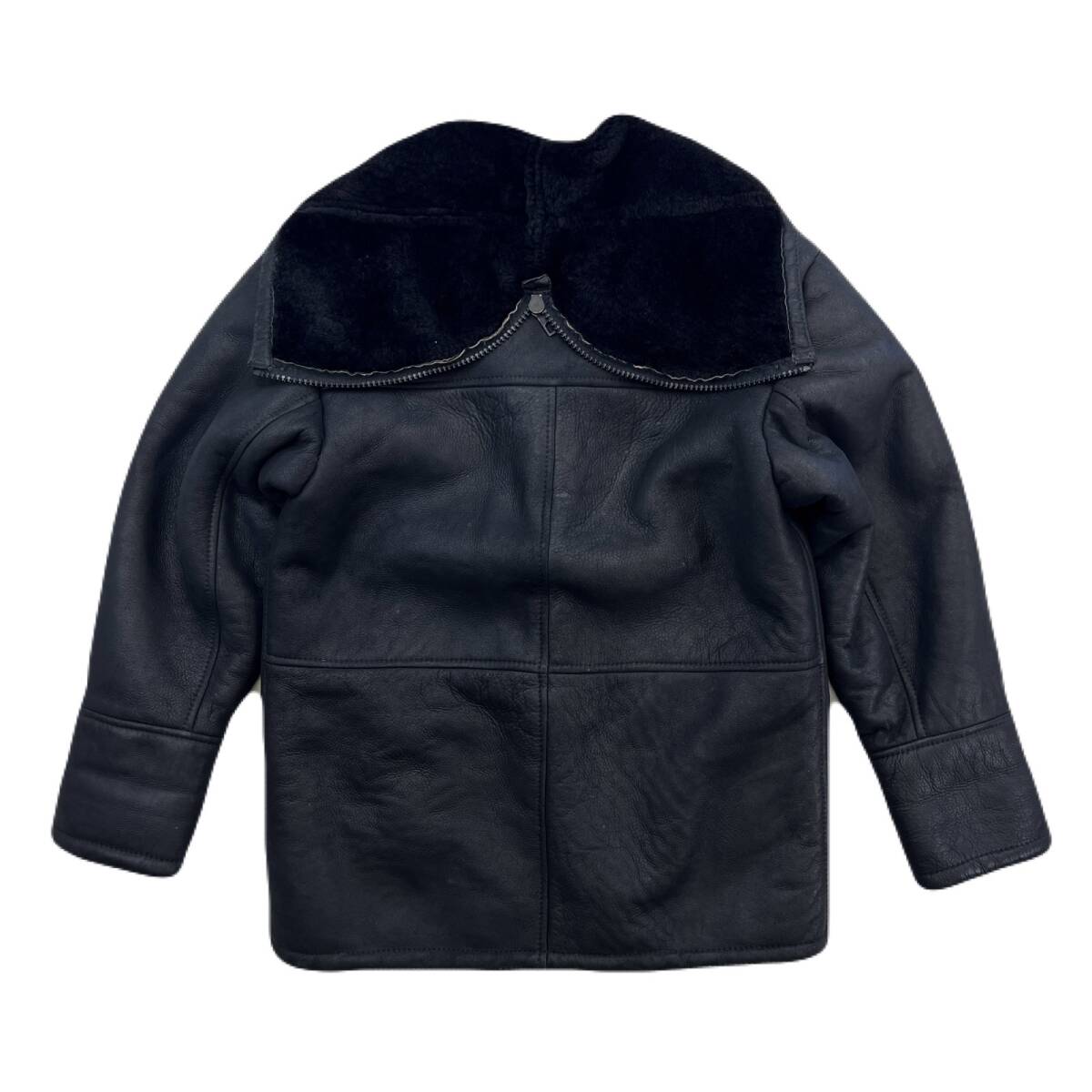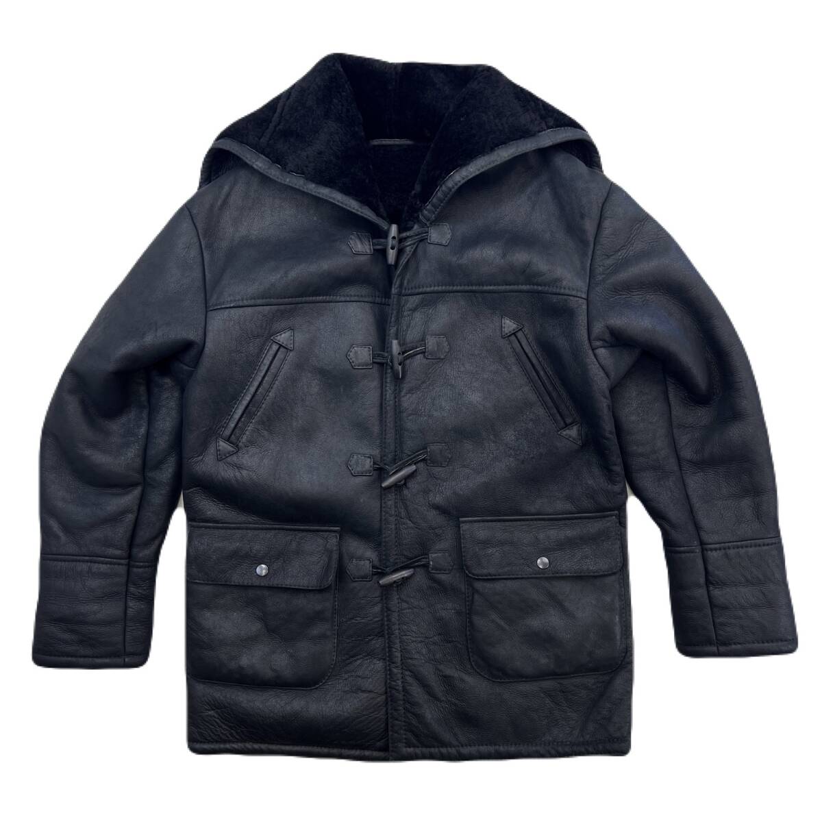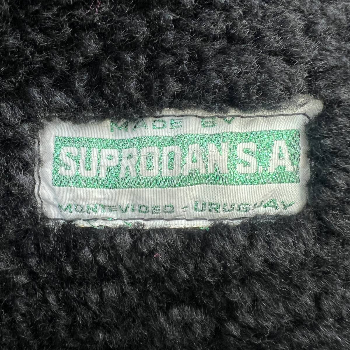 SUPRODAN SA ムートンコート パーカー フードジッパー メンズ Mサイズ 厚手 羊革 ブラック 黒 漆黒 ●BA317