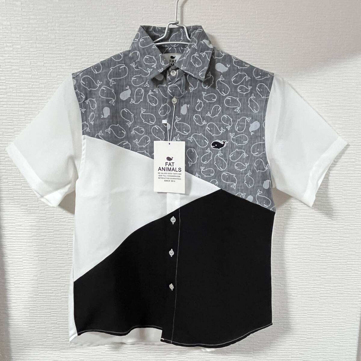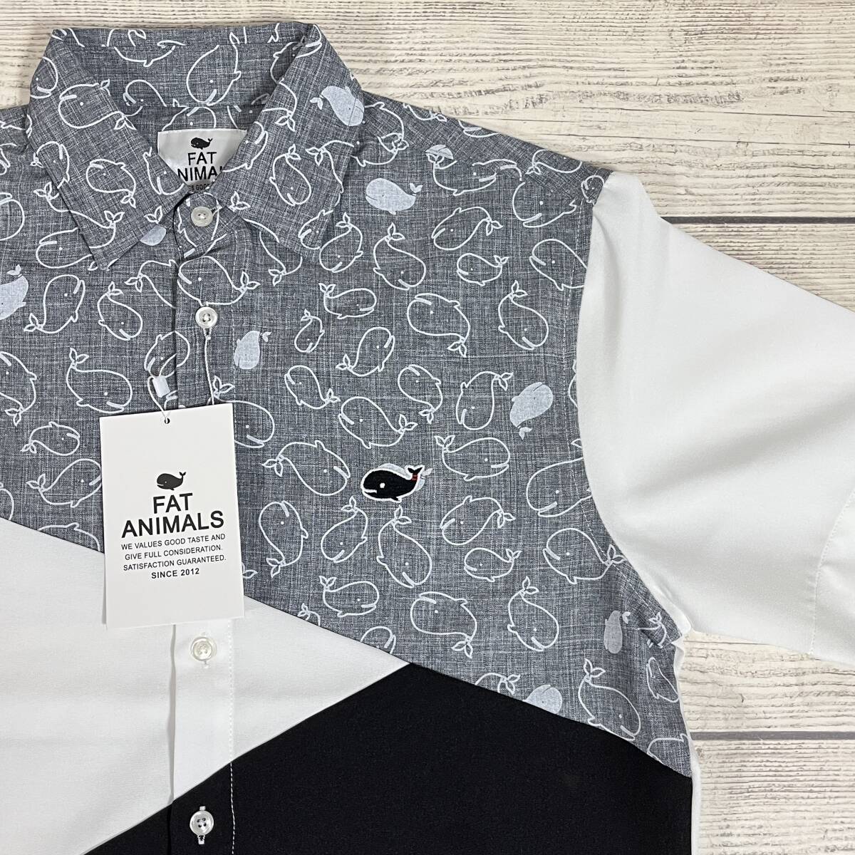 ★ Fat Animals (ファットアニマルズ) ★ 切り替えシャツ Mサイズ 半袖 クジラ カラーブロック ボタンダウンシャツ (タグ付き新品未着用)