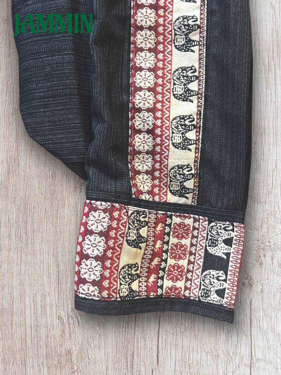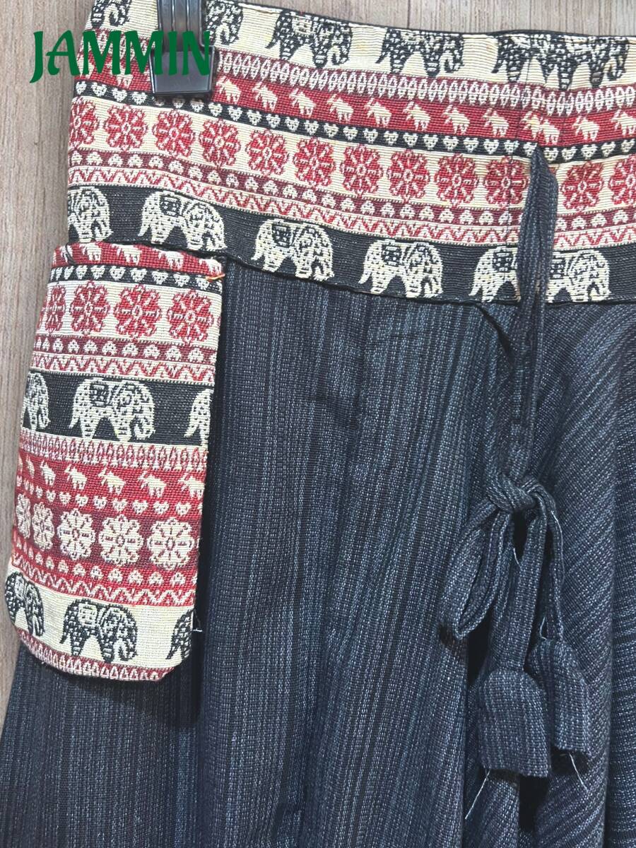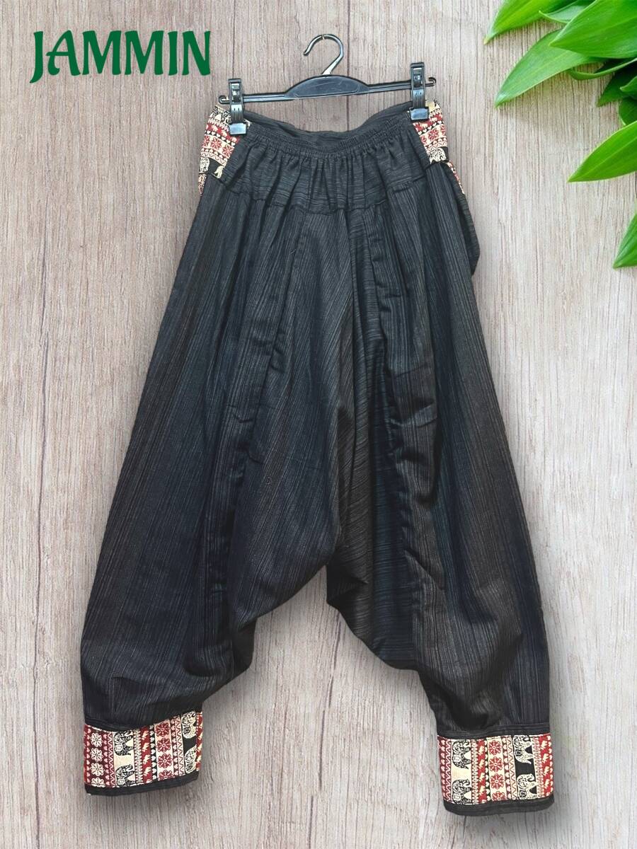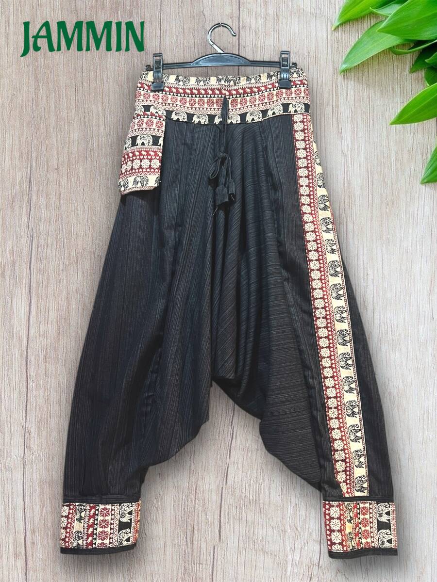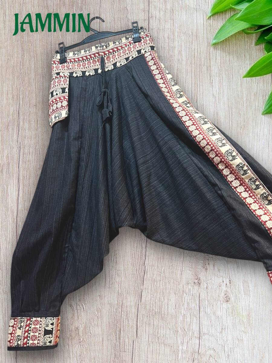織り柄生地付きサルエルパンツ 黒 アジアン エスニック 男女兼用 ヒッピー