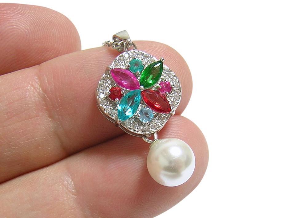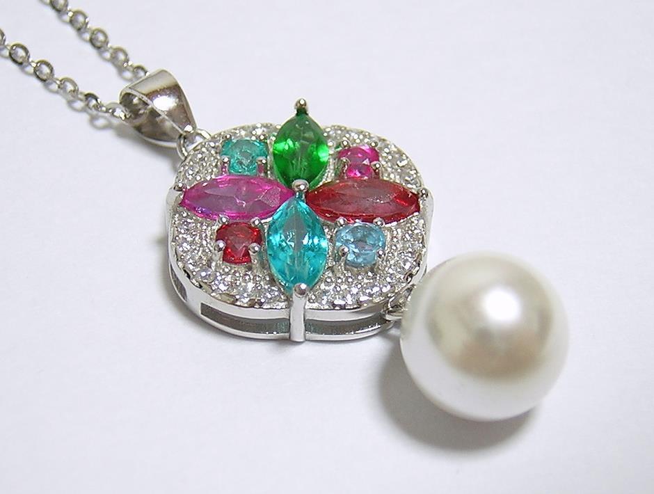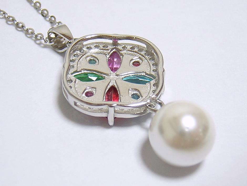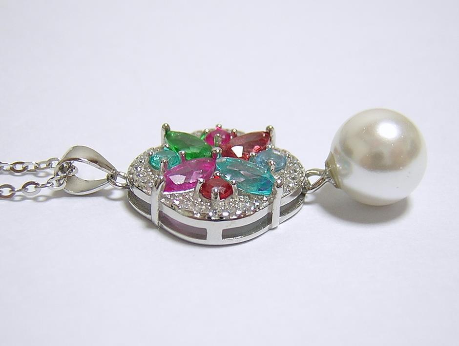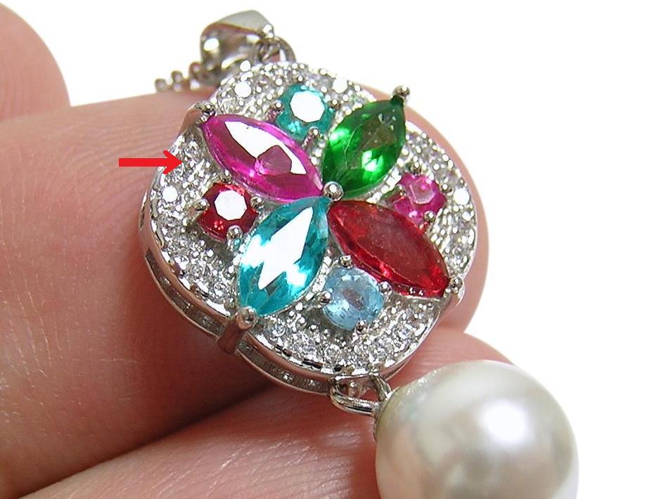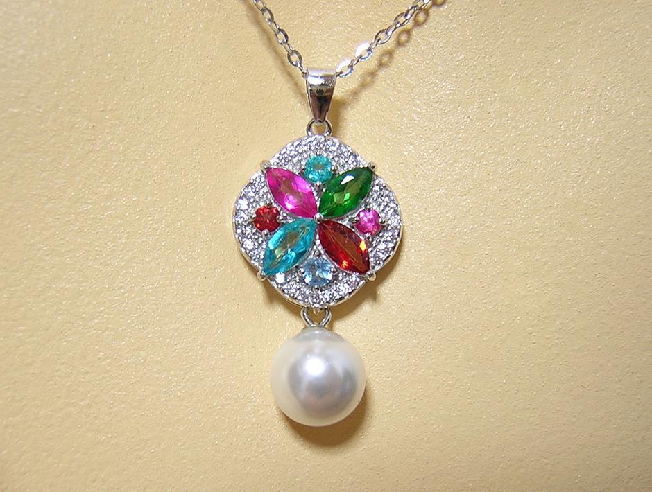 天然トパーズとキュービックジルコニアを使用したペンダントネックレスです。このトパーズは、コーティング処理を施すことによって色を改変した処理石です。ピンク色のトパーズにカケがあり、マザーオブパールにも複数のキズがありますので画像でご確認くださいませ。 【中石】天然トパーズ 【産地】ブラジル産 【処理】コーティング処理 【カット】マーキスカット、ラウンドカット 【脇石】キュービックジルコニア 【重さ】3.7g 【サイズ】30mm×14mm(カンを含む) カン内径:約3.2×2.5mm 【素材】シルバー925 (14金ホワイトゴールド仕上げ) 【刻印】S925 【状態】新品 |