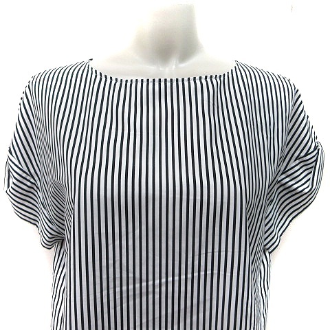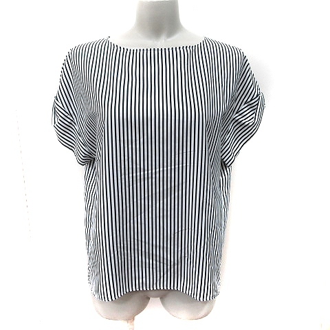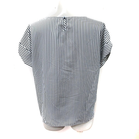 インディヴィ INDIVI シャツ ブラウス プルオーバー ストライプ フレンチスリーブ 38 M 黒 ブラック 白 ホワイト /YI レディース