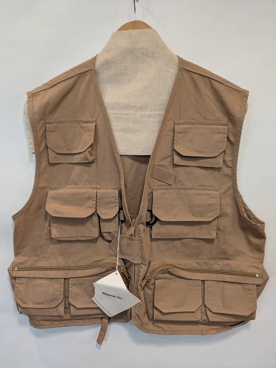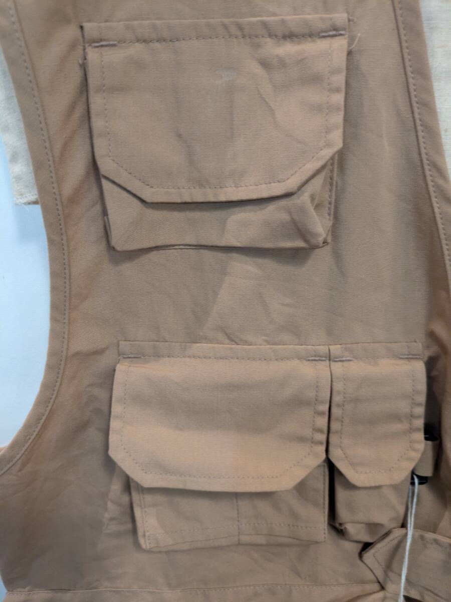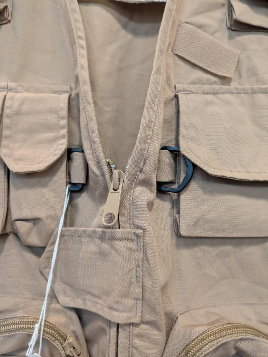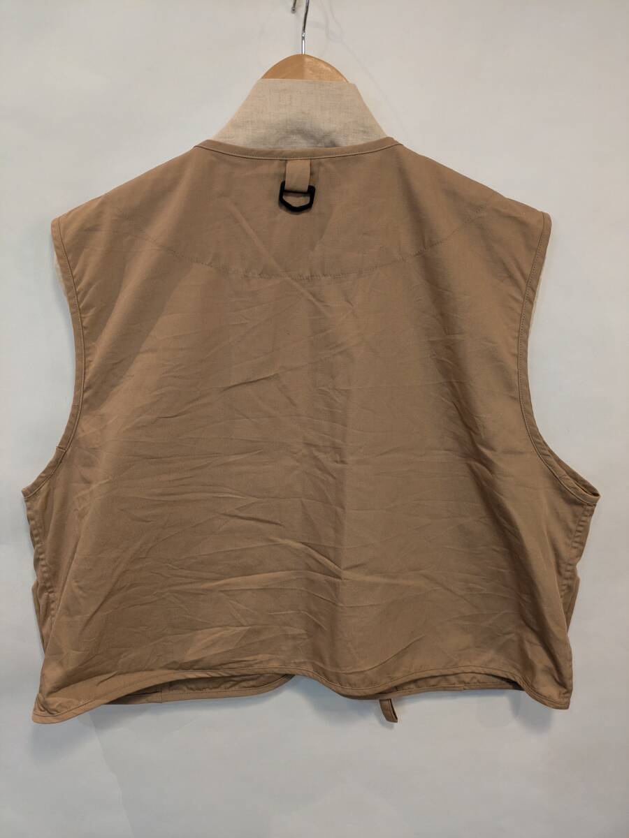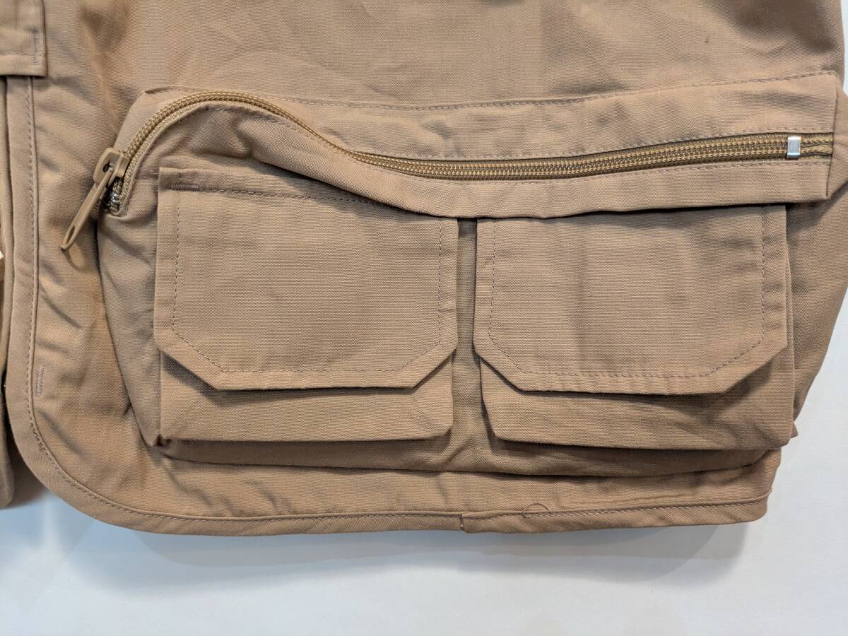 多機能なポケットが特徴のベージュカラーのフィッシング/ユーティリティベストです。フロントには様々なサイズの立体的なポケットが多数配置されており、収納力抜群。釣りやキャンプなどのアウトドアシーンはもちろん、普段使いのファッションアイテムとしても活躍します。