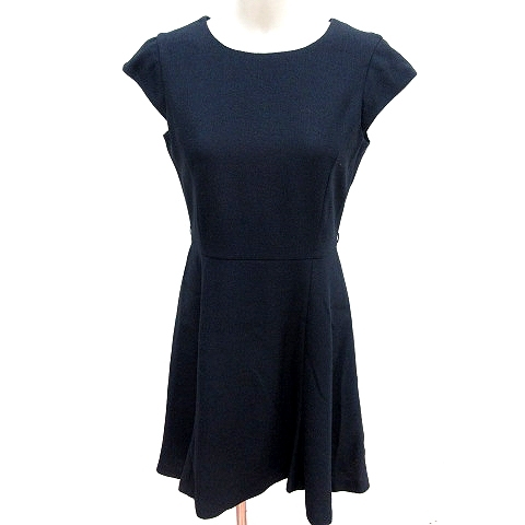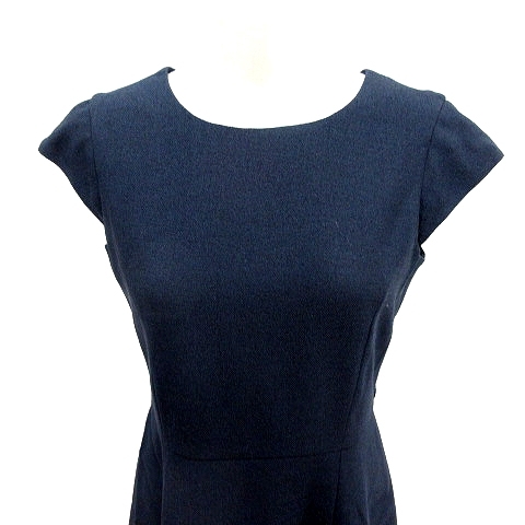 ナチュラルビューティーベーシック NATURAL BEAUTY BASIC ワンピース Aライン ひざ丈 半袖 M 紺 レディース