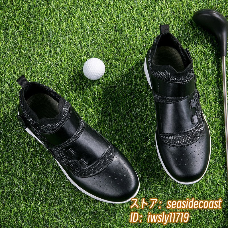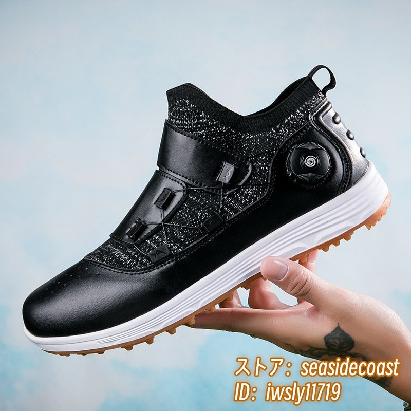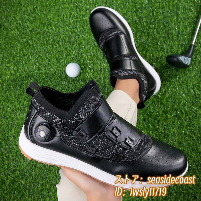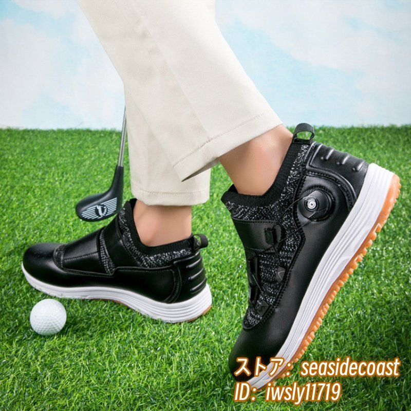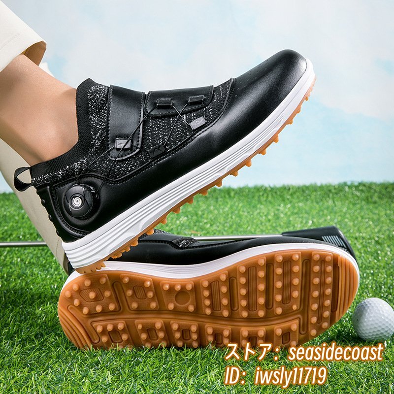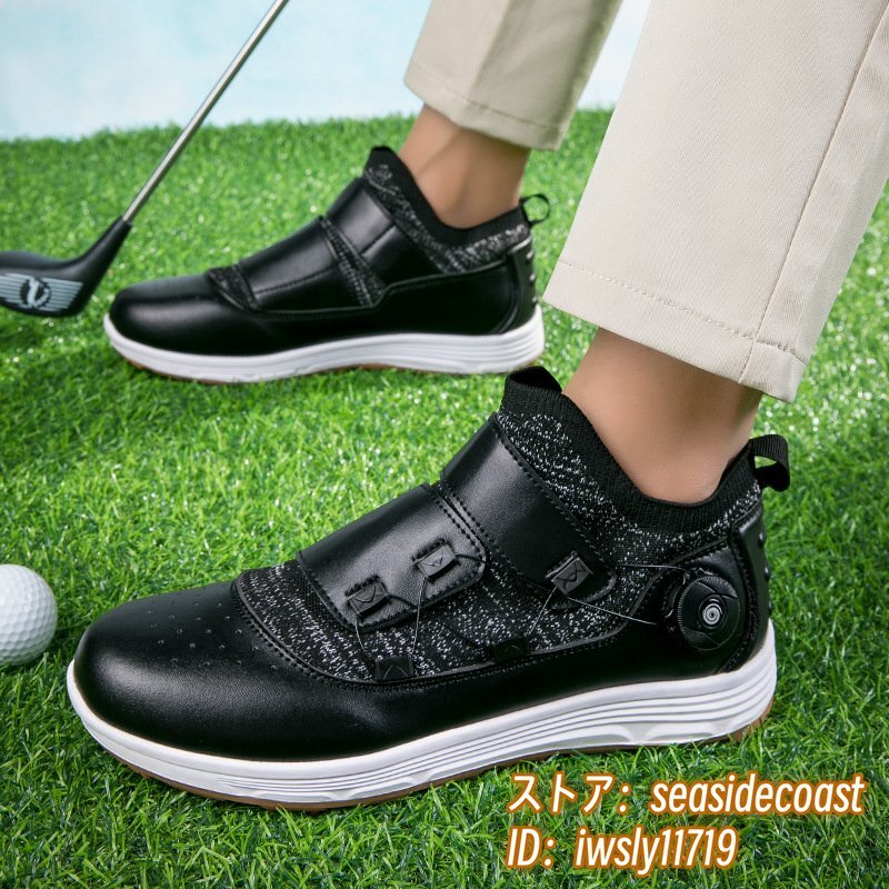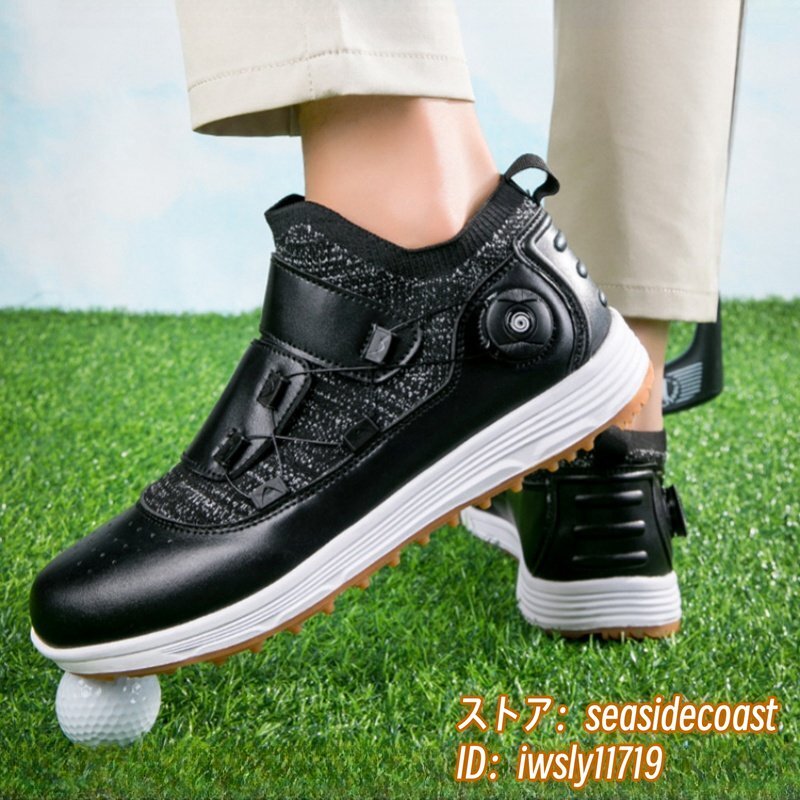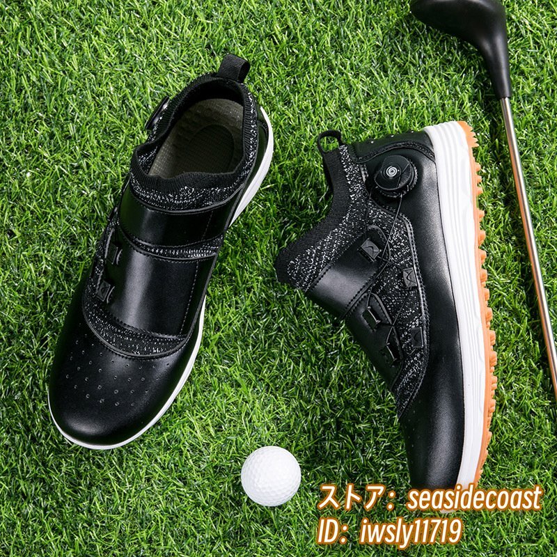 高級品 ゴルフシューズ 強いグリップ 新品ダイヤル式 運動靴 フィット感 軽量スポーツシューズ 弾力性 通気性 防滑 ブラック 25.5cm