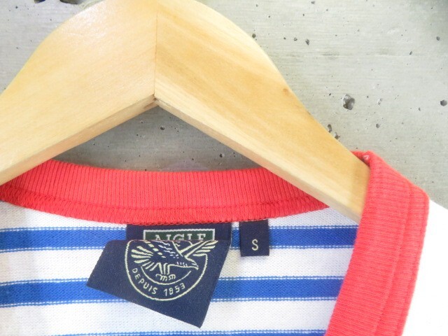 【送料300円可】0390b9◆良品です◆AIGLE エーグル マリンボーダー バスク地 七分袖丈 カットソーシャツ S/アウトドアジャケット/パンツ