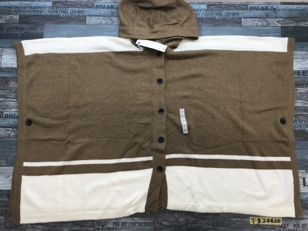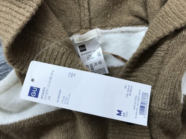 タグ付き新品!GU ジーユー レディース バイカラー ニット ポンチョ M 茶白 です。