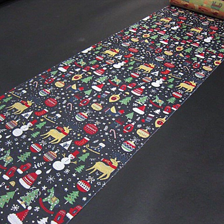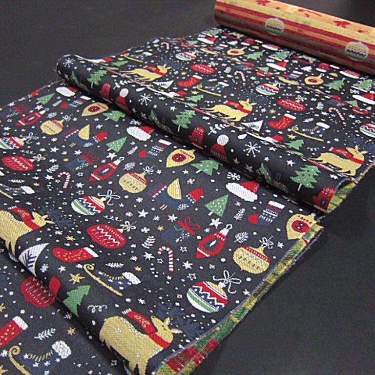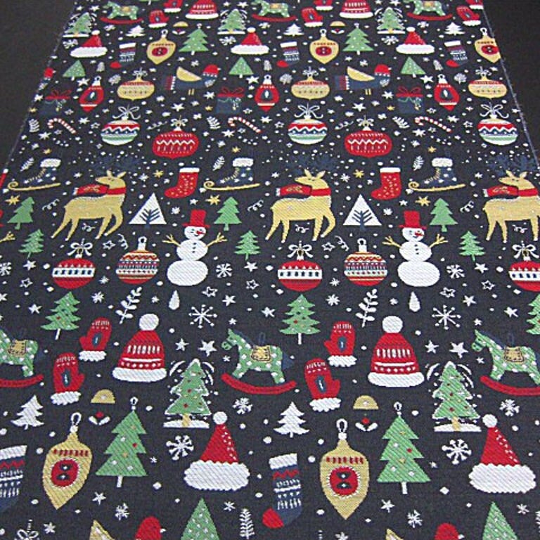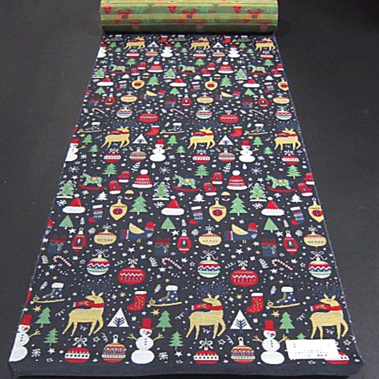 クリスマス 新品未仕立 西陣織六通柄丸巻袋帯 雪だるま ツリー トナカイ オーナメント