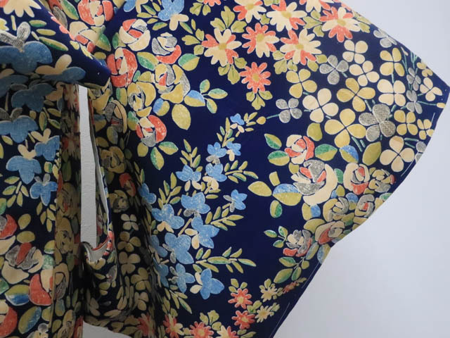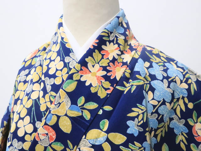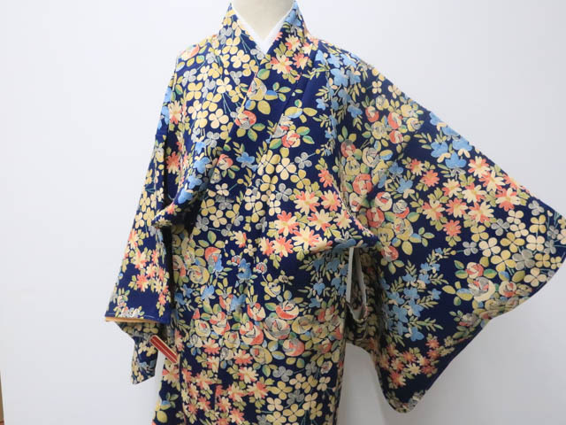 リサイクル商品ではございますが、大変良い状態のお品です。 地色は 紺です。 1枚目の画像が近いお色かと思われます。 素材は正絹です。 |
