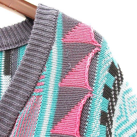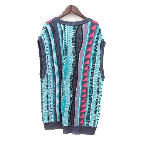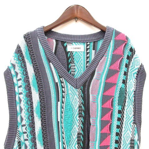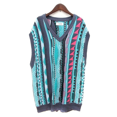 チャオパニック CIAOPANIC ベスト ニット プルオーバー Vネック 総柄 F 水色 ライトブルー /MN メンズ