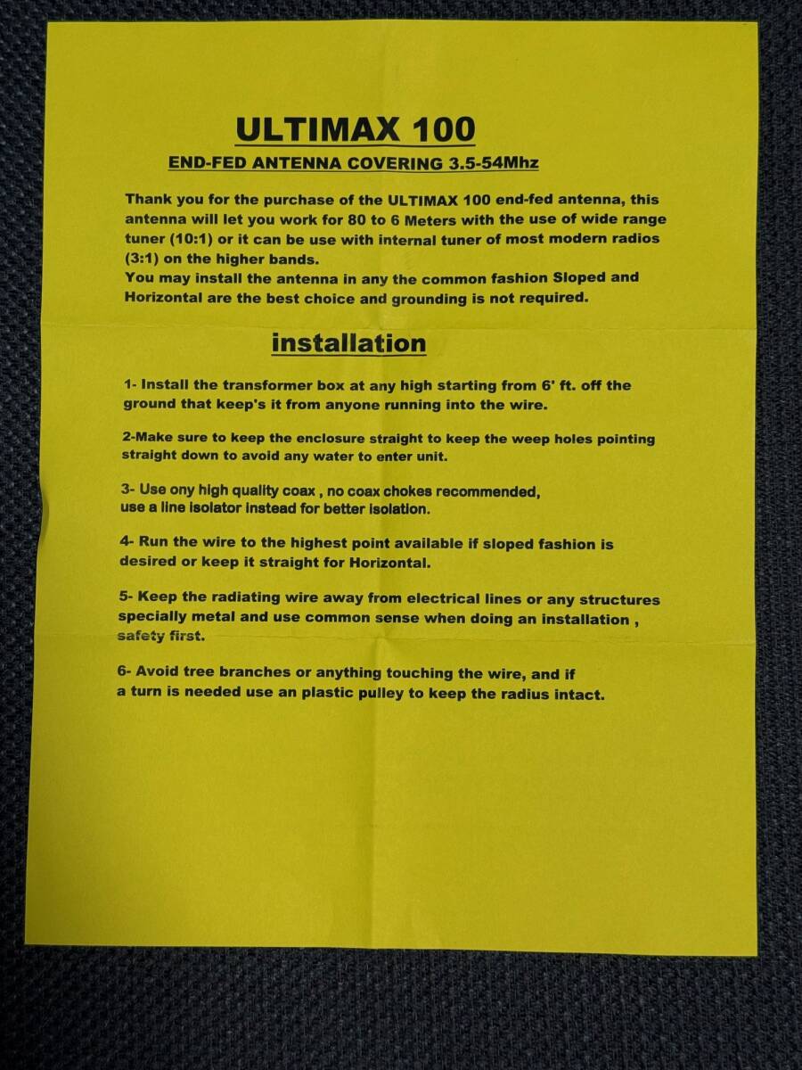 米国Ultimaxアンテナ製のマルチバンド片側給電ワイヤーアンテナ。