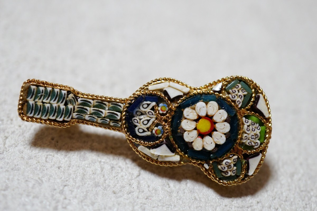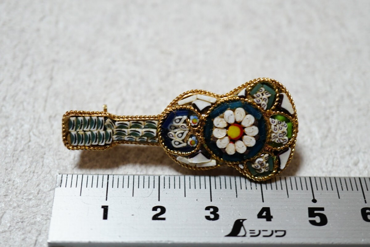 1286 イタリア 海外製 マイクロモザイク ゴールドカラー ブローチ ヴィンテージ アクセサリー アンティーク ガラス細工 装飾品
