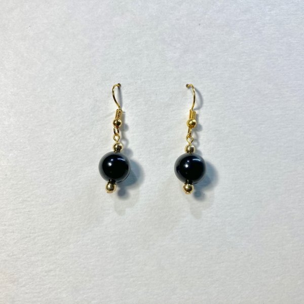 オニキス ピアス 一粒フックピアス 10mm (ゴールド) イヤリング、樹脂フック変更可 樹脂ピアス シンプル パワーストーン 天然石