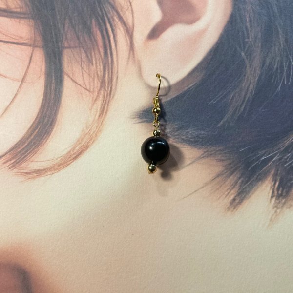 こちらは、10mm玉のオニキスを使用した一粒フックピアスです。シンプルなデザインはシーン問わず、どんなコーディネートにも合わせ易く使い勝手がいいアイテムです。今回は一粒ピアスの要望が多かった為制作しました。気になる方は是非この機会にどうぞ。