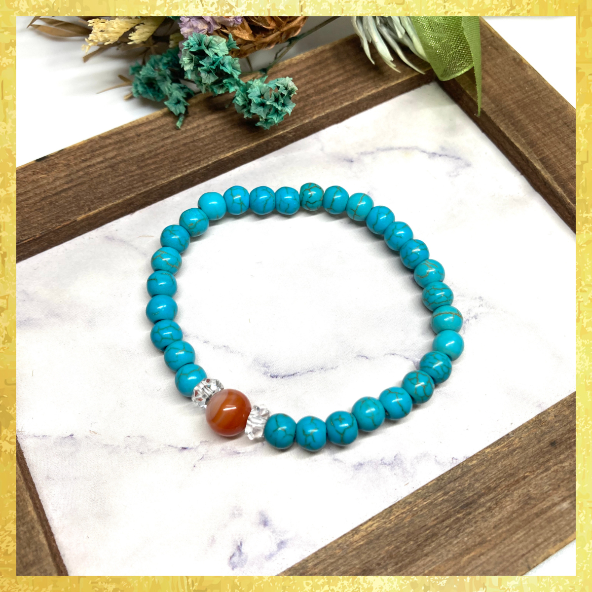 【SALE・送料無料・即決】カーネリアン・サードニクス(レッド天眼石)&ターコイズ ブレスレット パワーストーン 8mm×6mm / 男性 女性