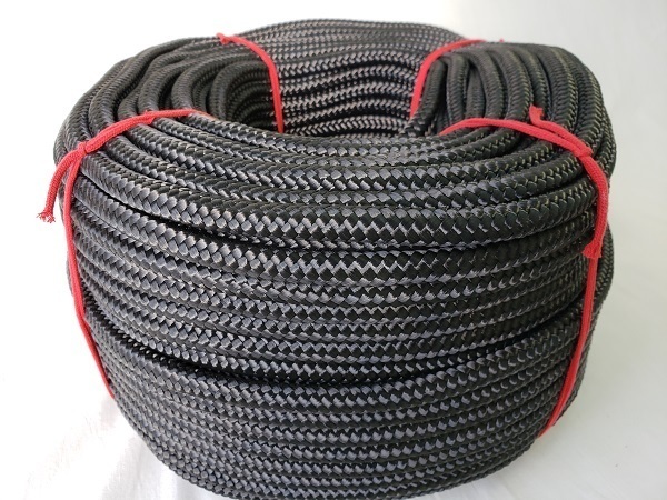 ・安心!!高品質!!低価格!!☆中にロープを入れ、外側をさらに2重に織り込むことで丈夫さと軟らかさを兼ね備えたポリエステル16打太さ12mmロープ100m巻きです。☆カラー:黒☆キャンプ・テント/アウトドアに。マリンスポーツ/アンカーロープにも最適です。☆フィラメント糸を使用している為、引っ張りにも強いロープです。☆国内の自社工場にて製造しております。
