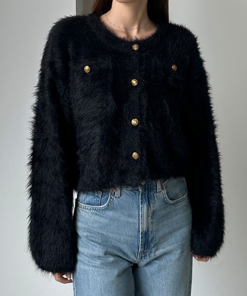 参考商品名:ゴールドボタンシャギーニットカーディガン