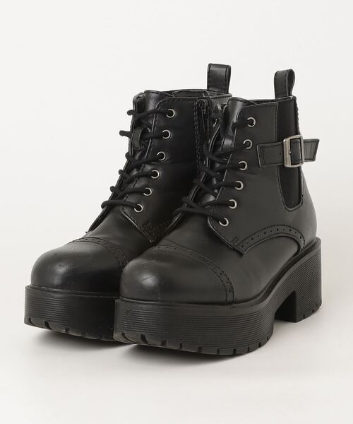 キーワード:ブーツ レディース ショート ストレートチップ ヒール 厚底 紐 秋 冬