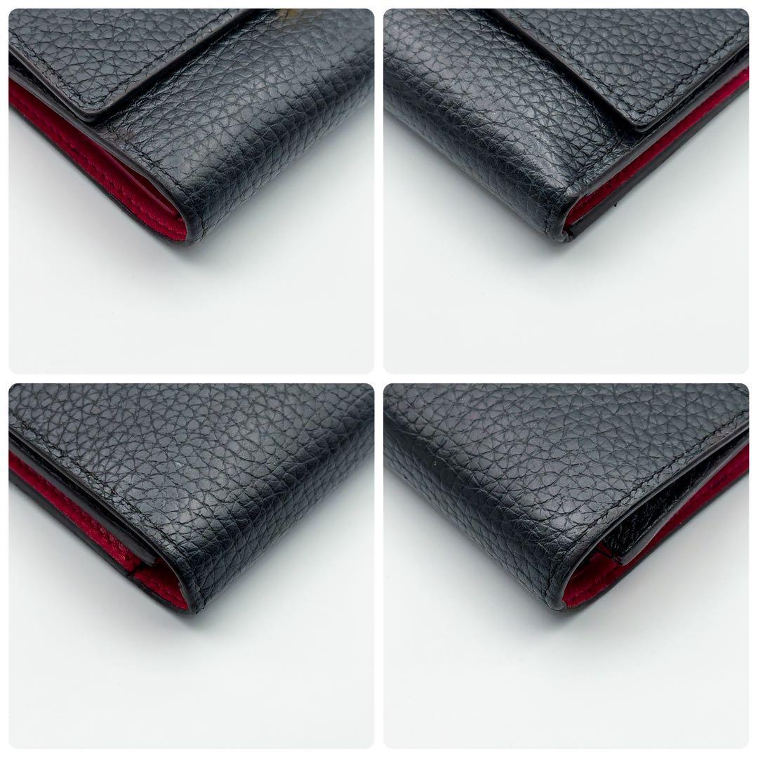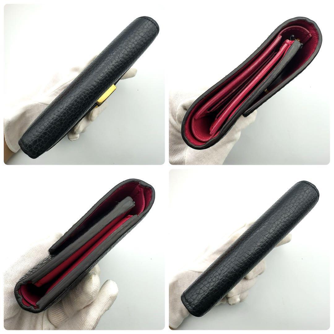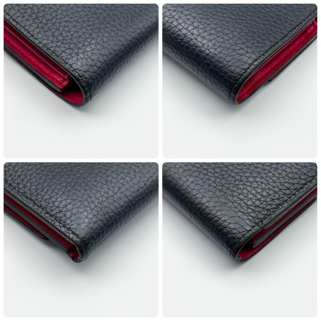 トリヨン 三つ折り財布 ブラック ホットピンク 黒
