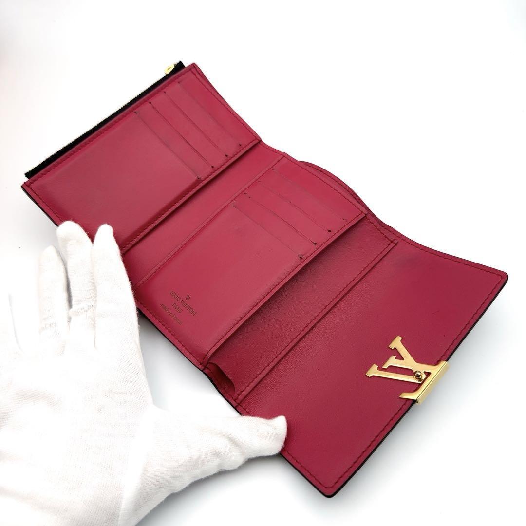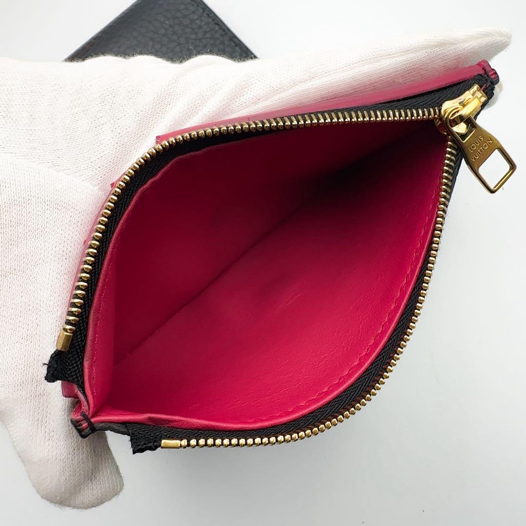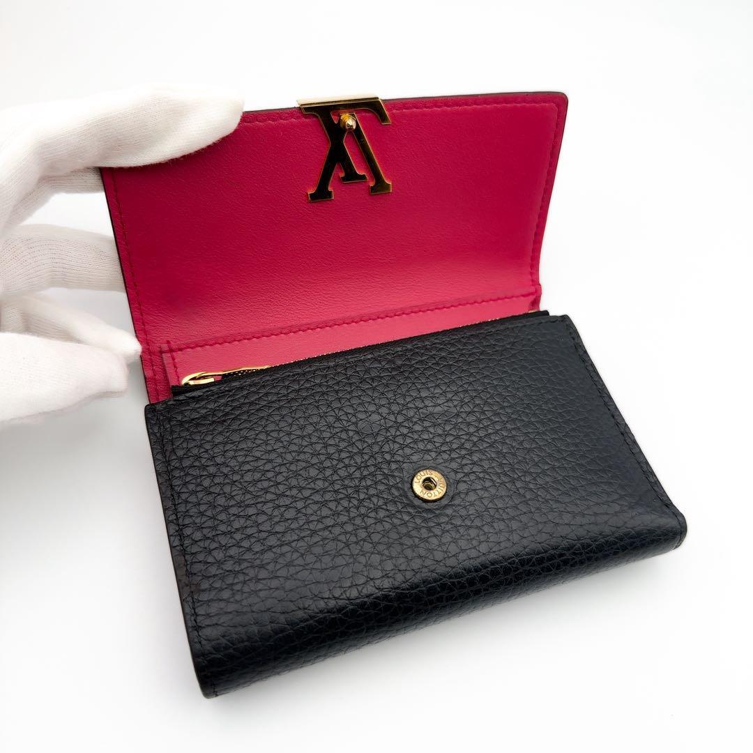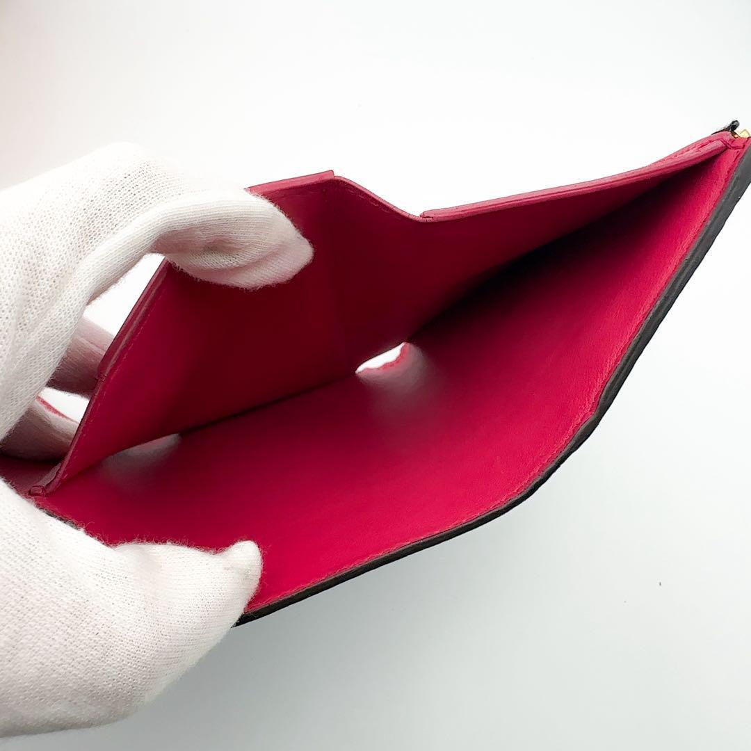 トリヨン 三つ折り財布 ブラック ホットピンク 黒