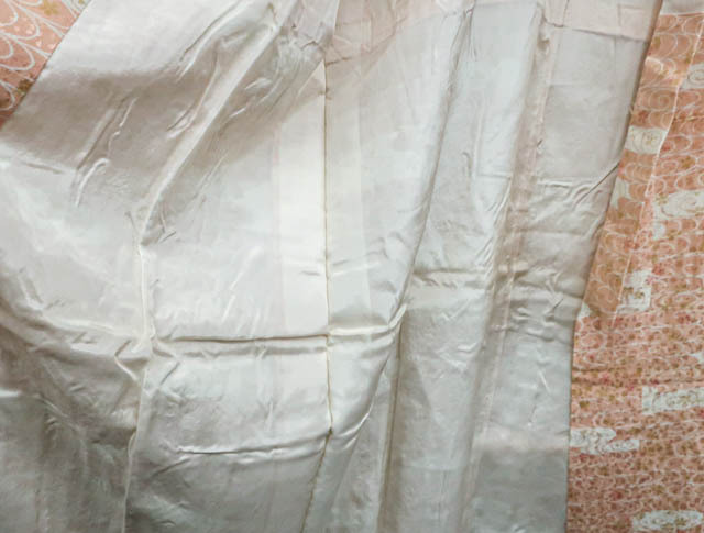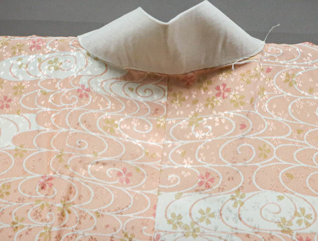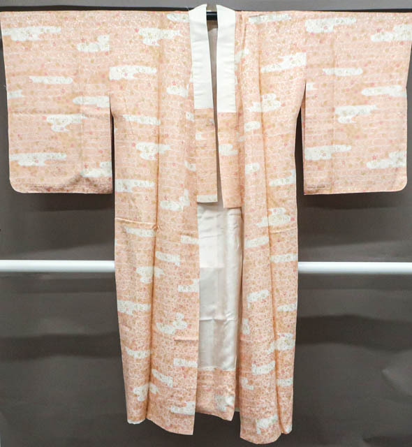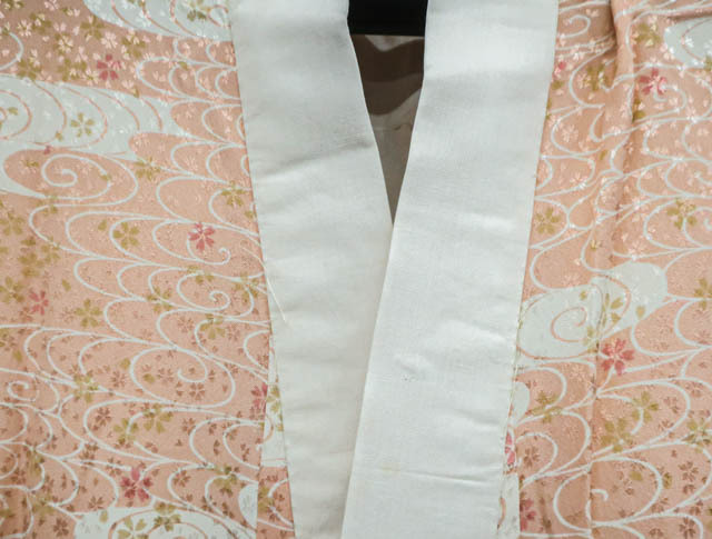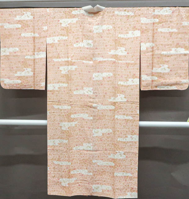 リサイクル商品のため、衿に汚れがございますがご着用いただけると存じます。 地色は、ピンクです。 1枚目の画像が近いお色かと思われます。 素材は、化繊です。 |