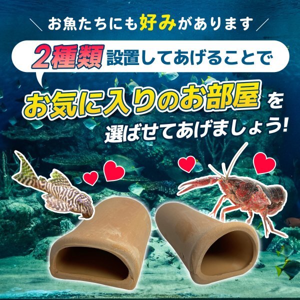 熱帯魚や魚たちにも個性があります。カマボコ型と細長型の2種類を設置することで魚たちに安心して産卵できる環境を選らんでもらうことが出来ます。