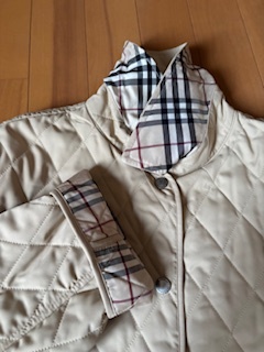 バーバリーの薄手のダウンジャケットです。サイズは40です。着丈64㎝、袖丈60㎝、両脇の間50㎝です。美品です。