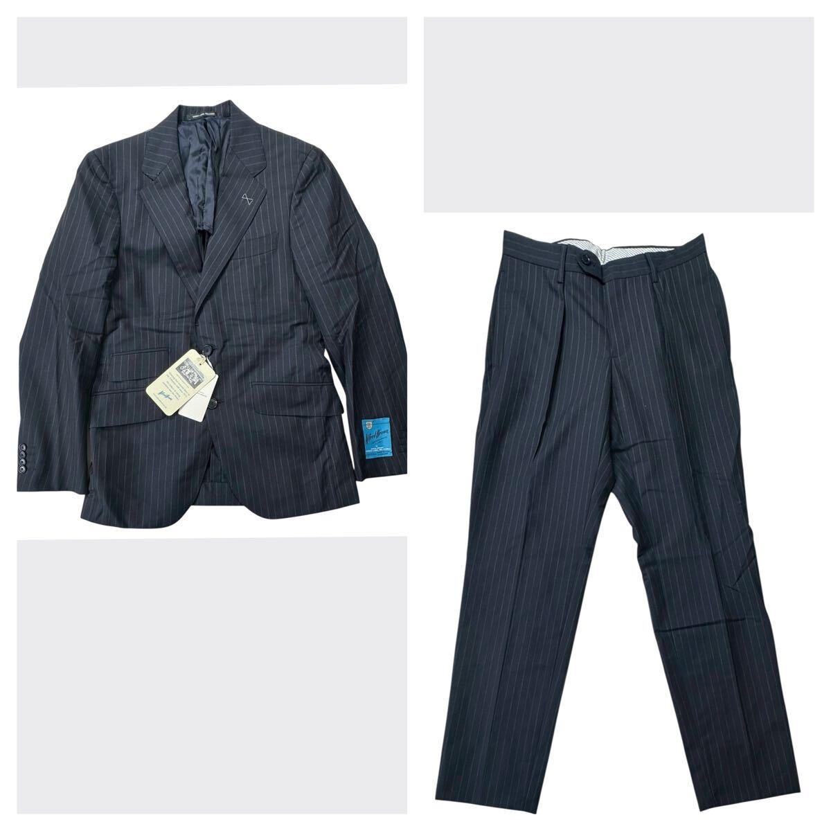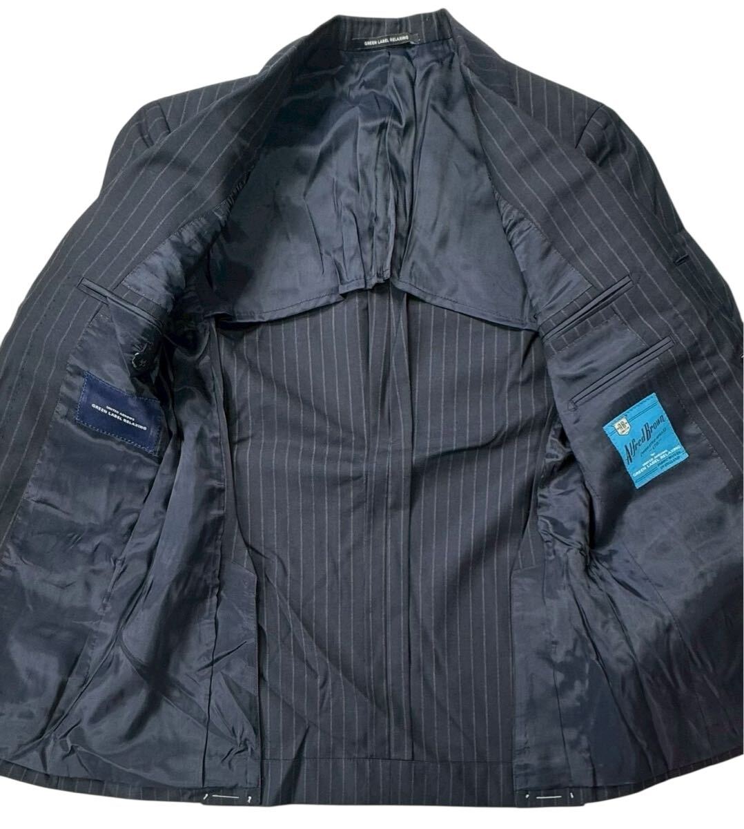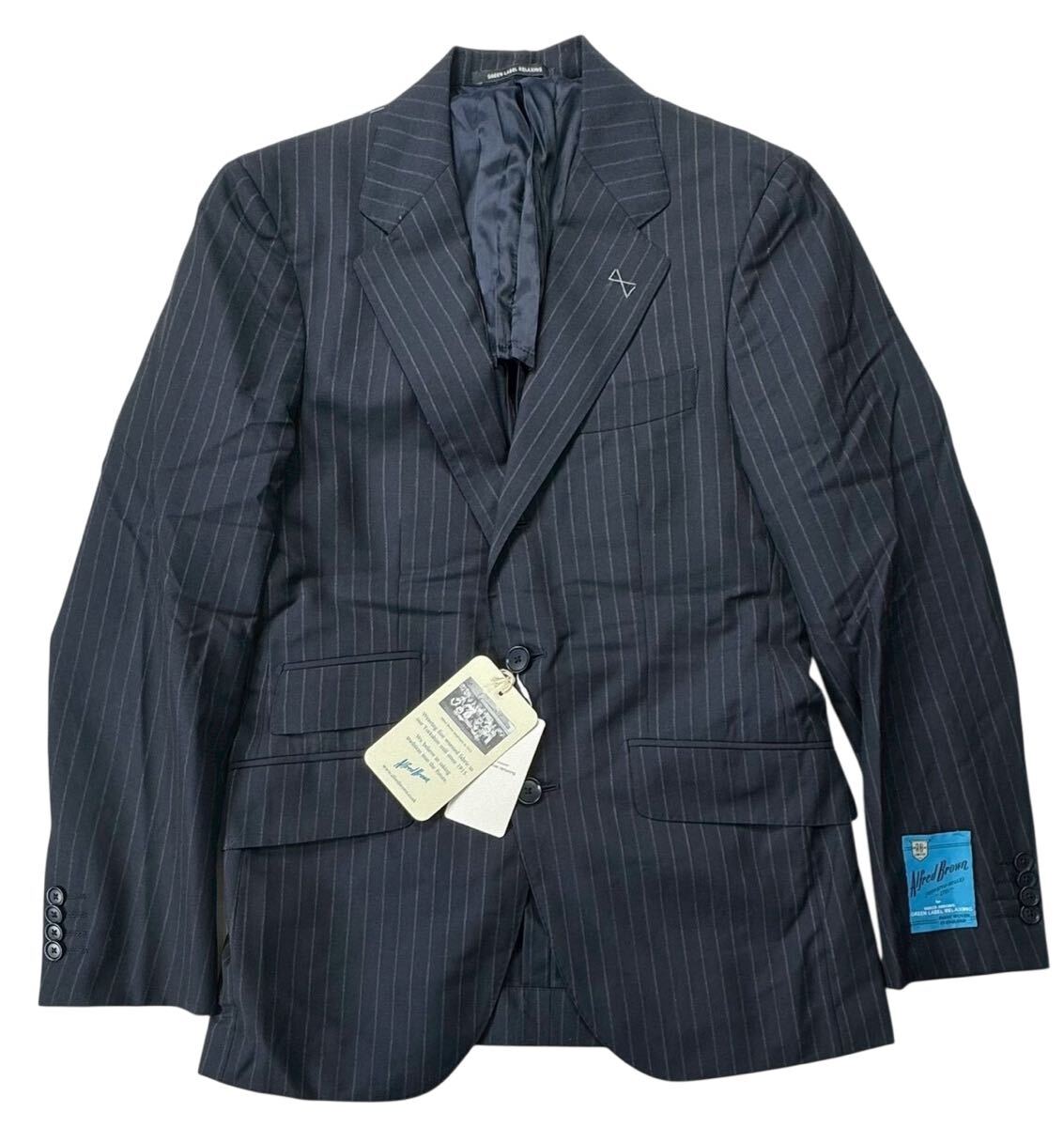 未使用品 Alfred Brown ユナイテッドアローズ スリーピース ジャケット パンツ ベスト スーツ セットアップ ネイビー/ストライプ 42