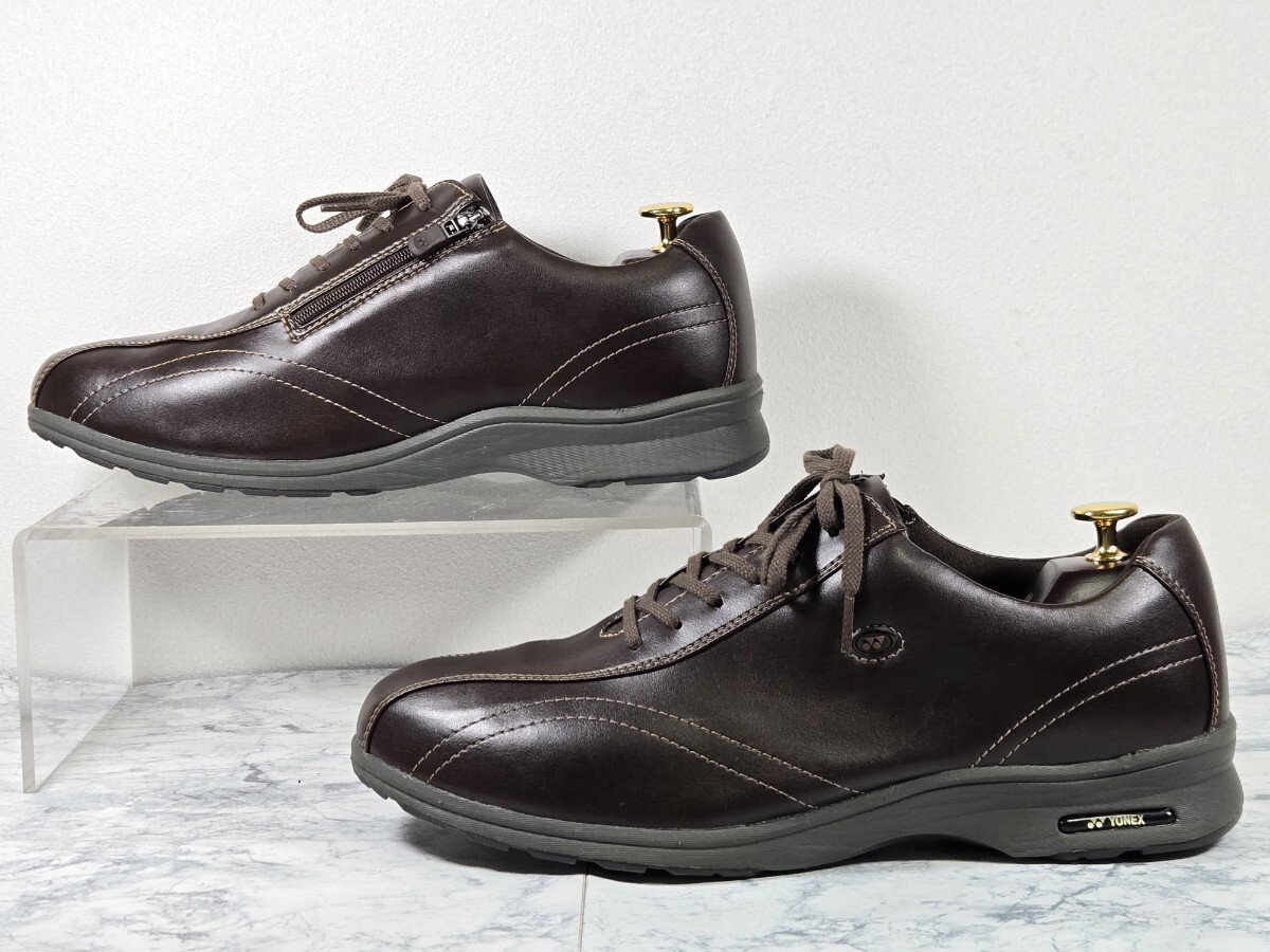 【美品】★YONEX ヨネックス★パワークッション/SHW-MC30★27.5cm★ダークブラウン★本革★ウォーキングシューズ★レザースニーカー