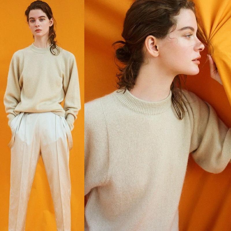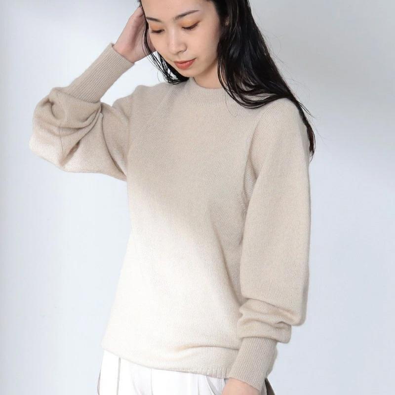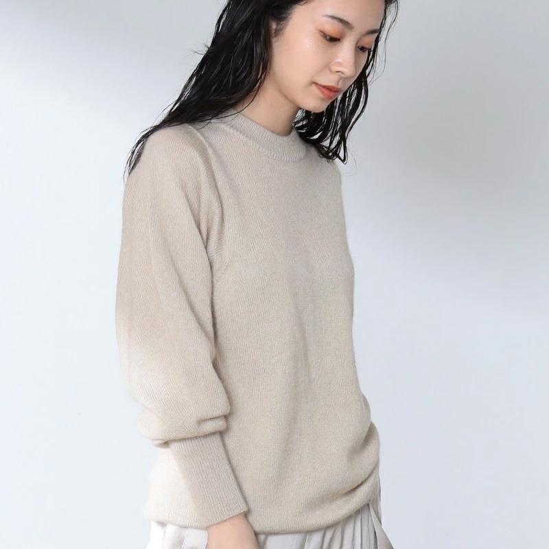 やや詰まったネックラインとゆとりある袖のコントラストが、大人の抜け感をもたらします。