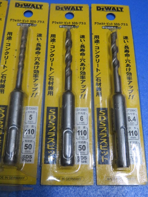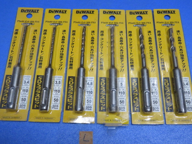 (L)DEWALT SDSプラスビット 3.4mm,3.5mm,4.8mm,5.0mm,6.0mm,6.4mm×110mm 6本組 送180 コンクリートドリル デウォルト