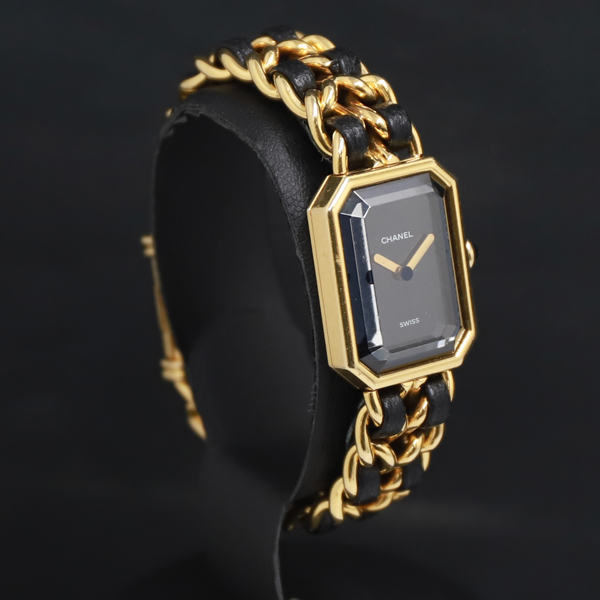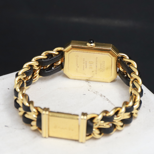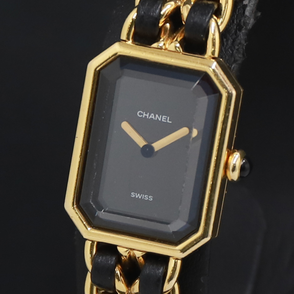 1円 稼働 QZ シャネル プルミエールM 黒文字盤 U.B.46148 レディース腕時計 0035310 10BKT KRK