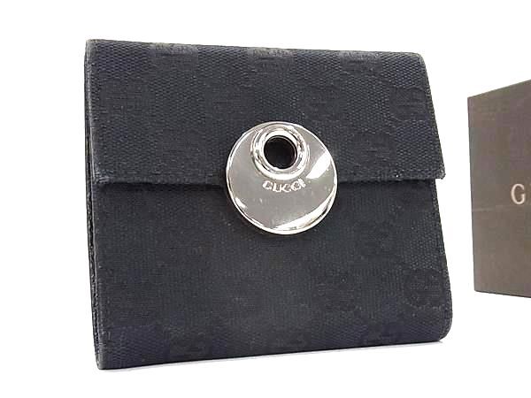 1円 ■美品■ GUCCI グッチ 120933 GGキャンバス 三つ折り 財布 ウォレット 札入れ 小銭入れ レディース ブラック系 GB2026
