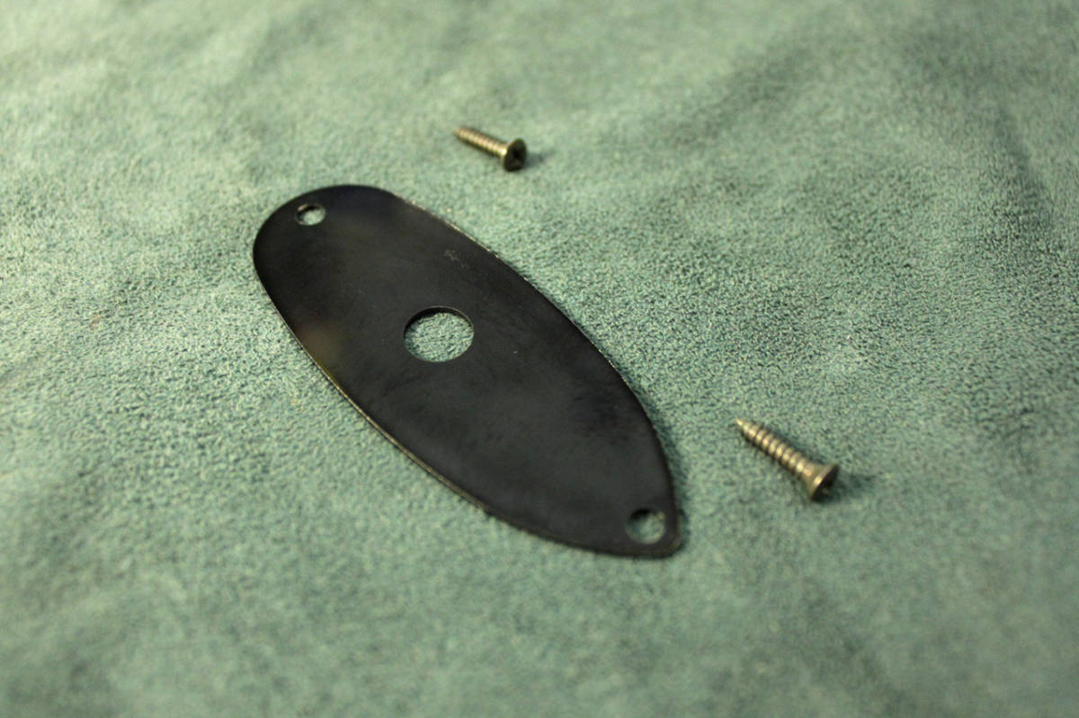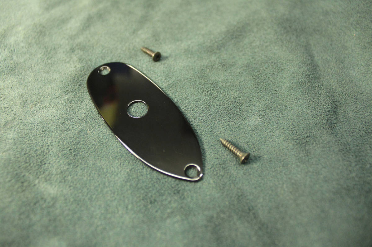 金属製のストラトタイプ用のフラットジャックプレートでブラックメッキになります。