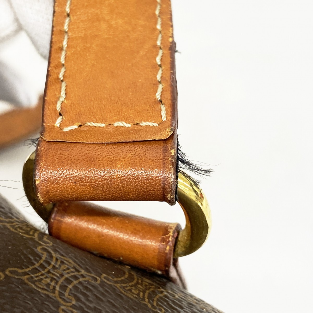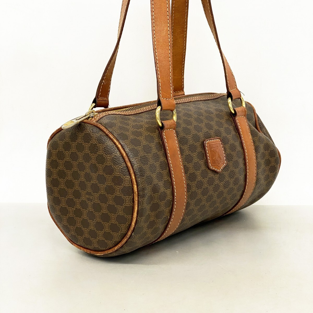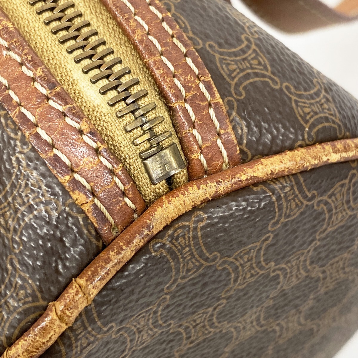 【5mb1794】セリーヌ ハンドバッグ マカダム PVC ブラウン ゴールド金具【中古】レディース