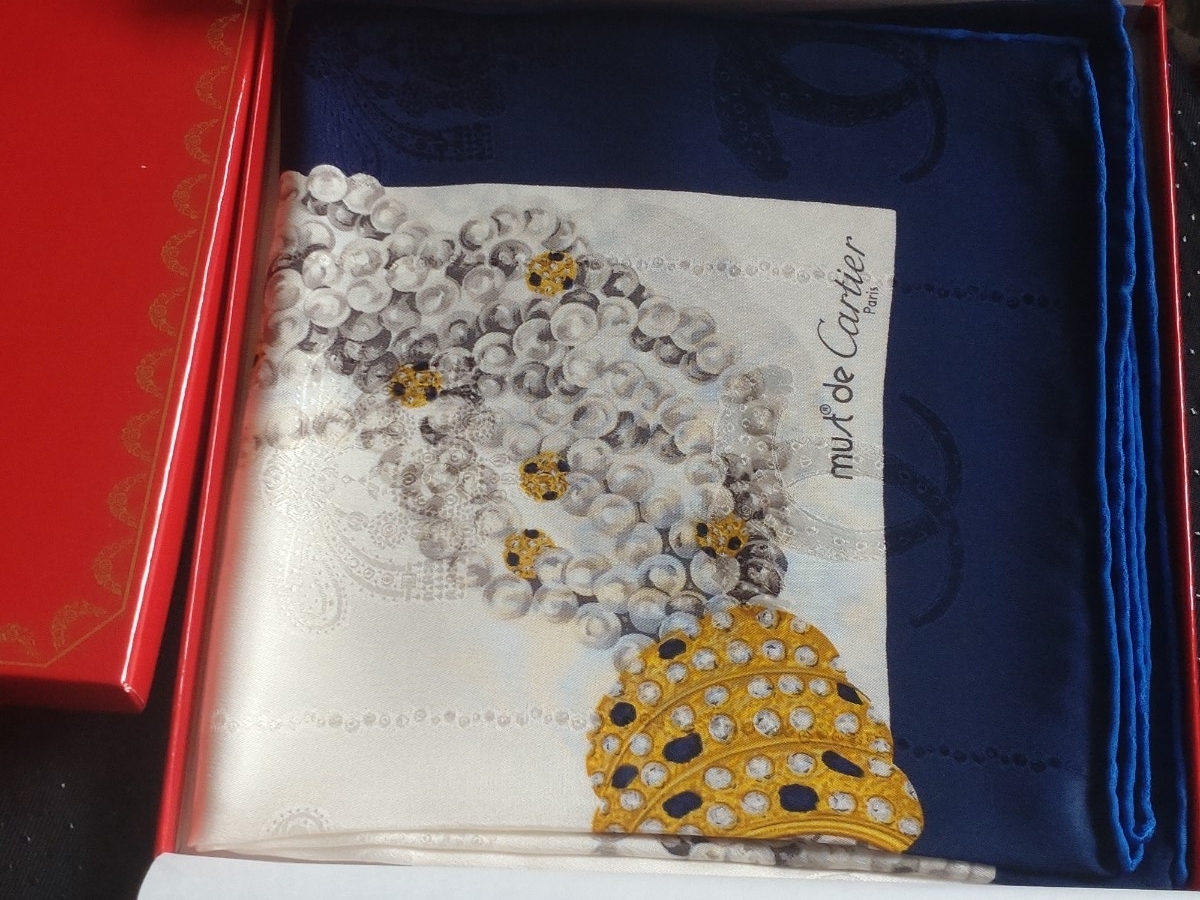 未使用 Cartier カルティエ マスト ドゥ カルティエ パンテール シルク スカーフ ジュエリー柄