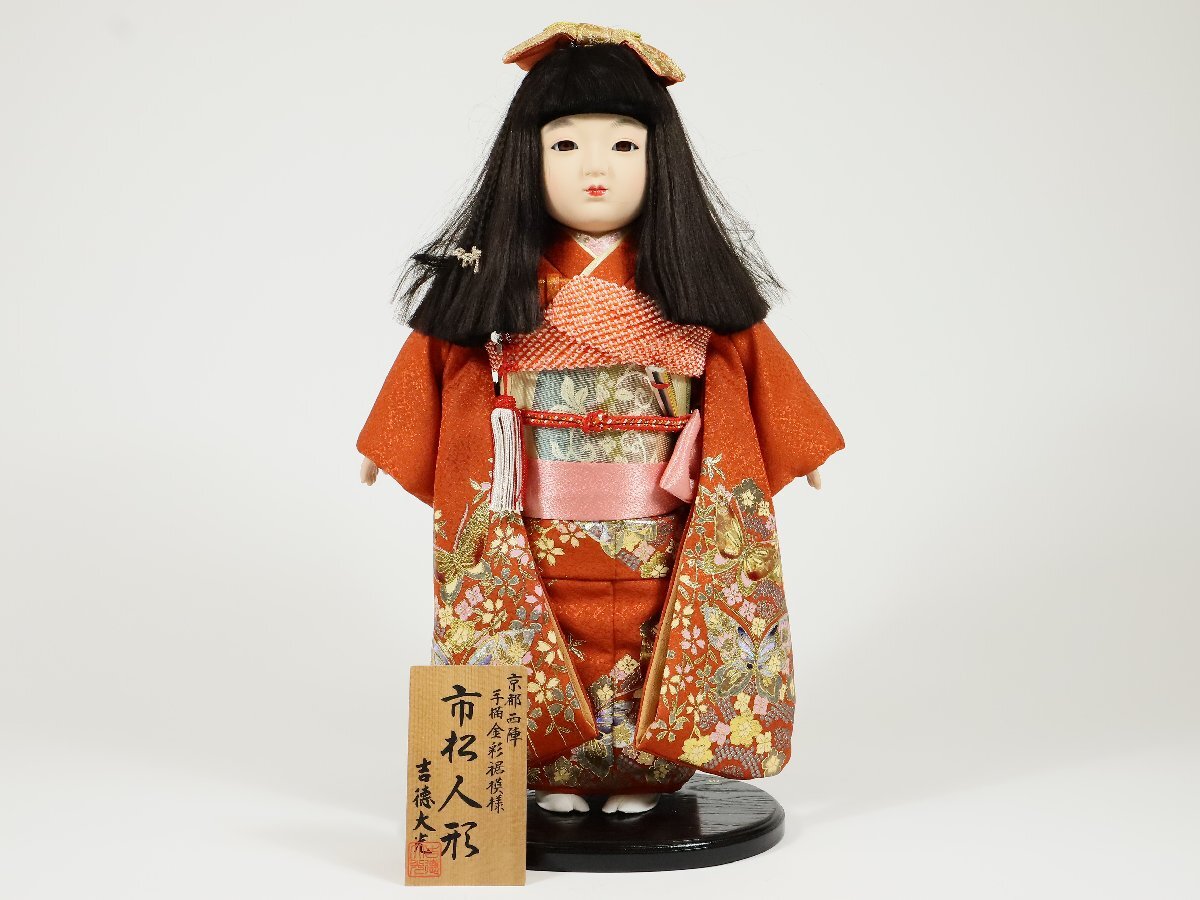 品名】 市松人形 京都西陣 手描金彩裾模様 吉徳大光 ガラスケース付 生き人形 日本人形 着物人形 少女人形 【状態】 経年による多少のスレやヨゴレ、イタミがございます。 ガラスケース無しでの発送も承りますが、送料は変わらず頂戴いたします。 時代や産地、作者の記載がある商品に関しては当店での判断によるものですので、保証はいたしかねます。あくまで参考程度とお考えいた だき、画像による判断をお願い致します。 上記を含む商品の状態や詳細(材質等)を写真にてご確認いただき、納得された上での入札をお待ちしております。 【大きさ】 人形高さ:約48cm (採寸につきましては多少の誤差があるかと思いますので、予めご了承ください。) |