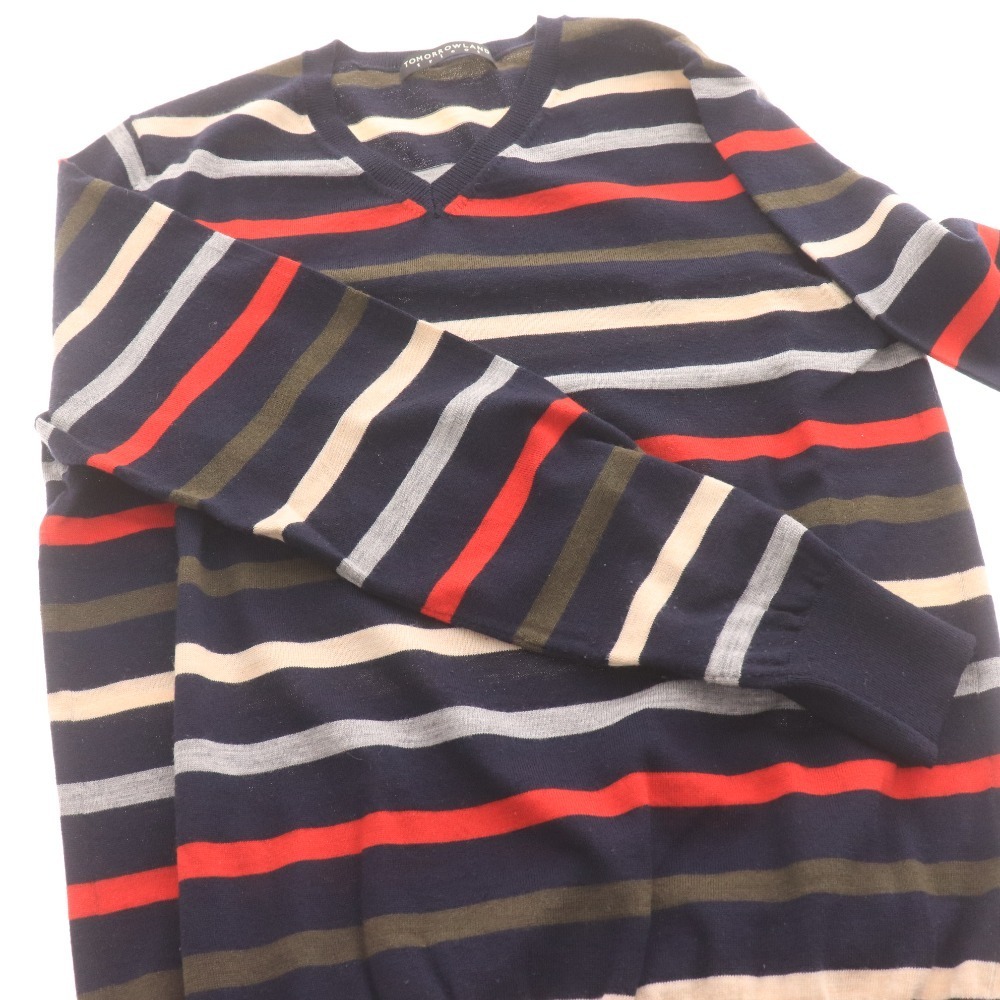 TOMORROWLAND tricot トゥモローランド セーター 長袖 トップス ニット Vネック ボーダー柄 メンズ M マルチカラー ネイビー 等 付属品:写真のものが全てです ●表記サイズ:M ○実寸 着丈:64cm 肩幅:37.5cm 身幅:47.5cm 袖丈:61.5cm ⇒ アパレル商品のカラー基準・採寸方法・海外サイズ換算表 (参考)トルソー(マネキン)は男女ともMサイズです。 素材:表地:ウール100% | ||||||||||||||||