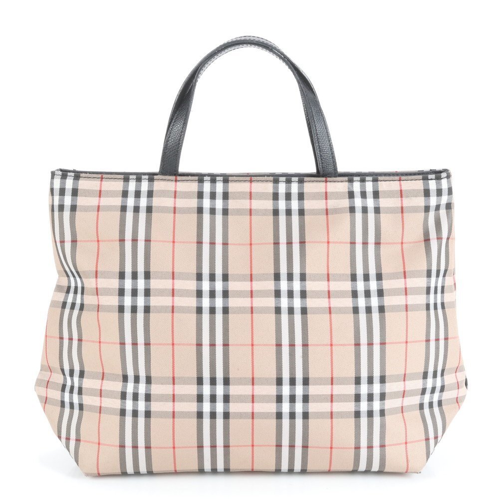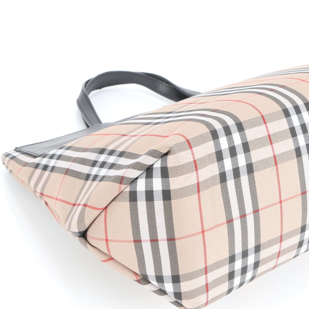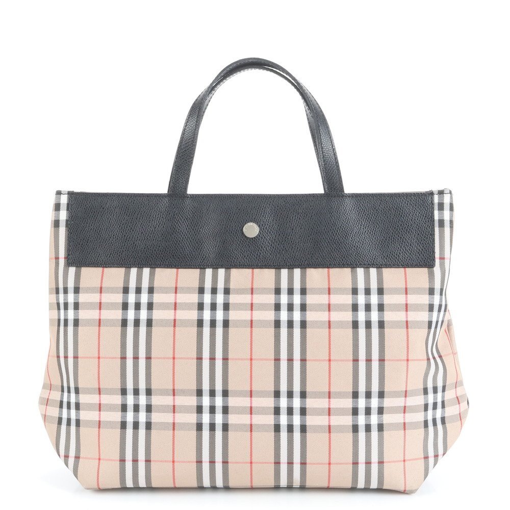1円■極美品■バーバリー■ノバ チェック レザー トート バッグ 肩掛け ショルダー ハンド A4 ベージュ ブラック レディース EUE CV20-1