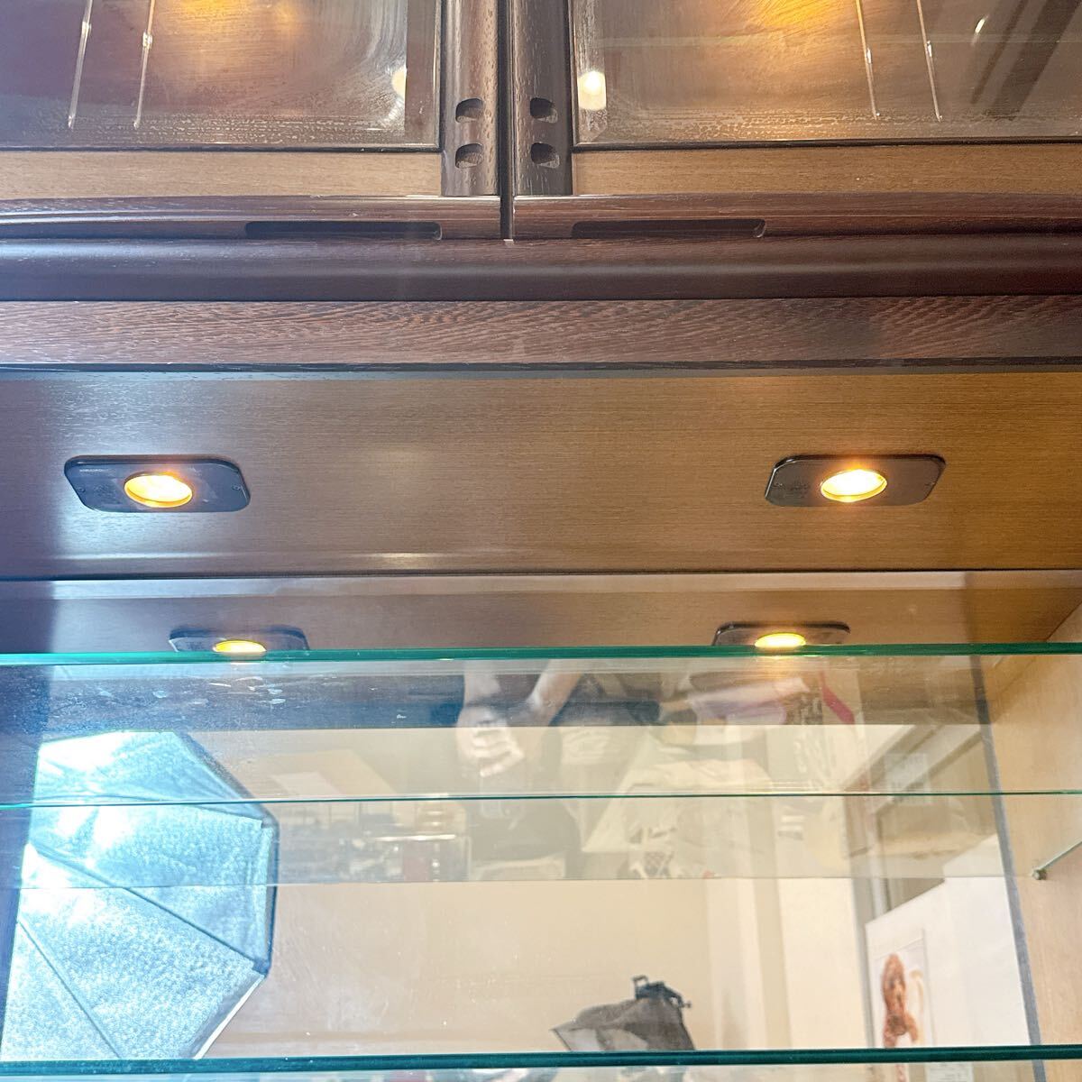 204*中古 T&H ガラスキャビネット 飾り棚 ガラスケース ガラス ライト付き 幅約110cm 奥行き約54cm 高さ約200cm レトロ 現状品*