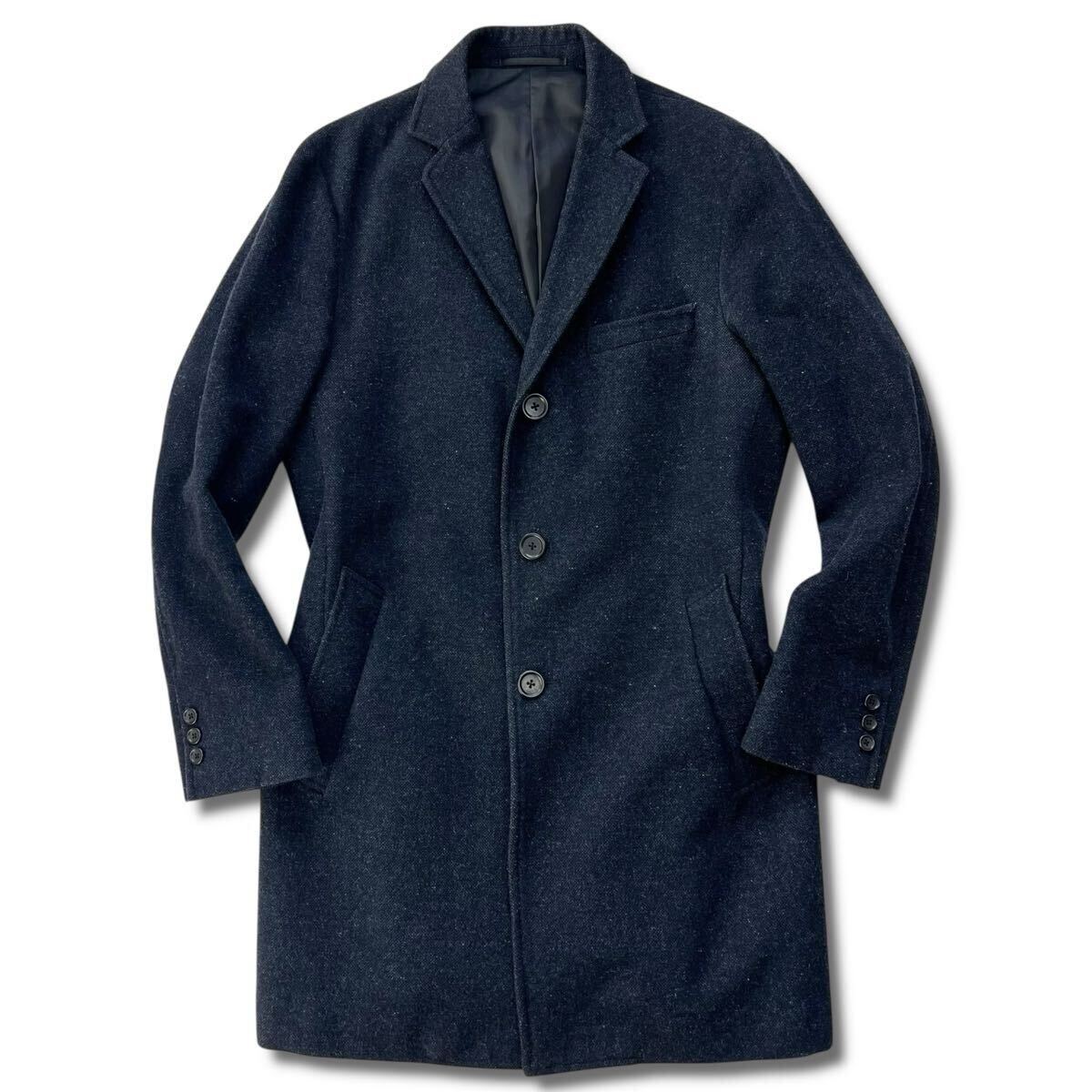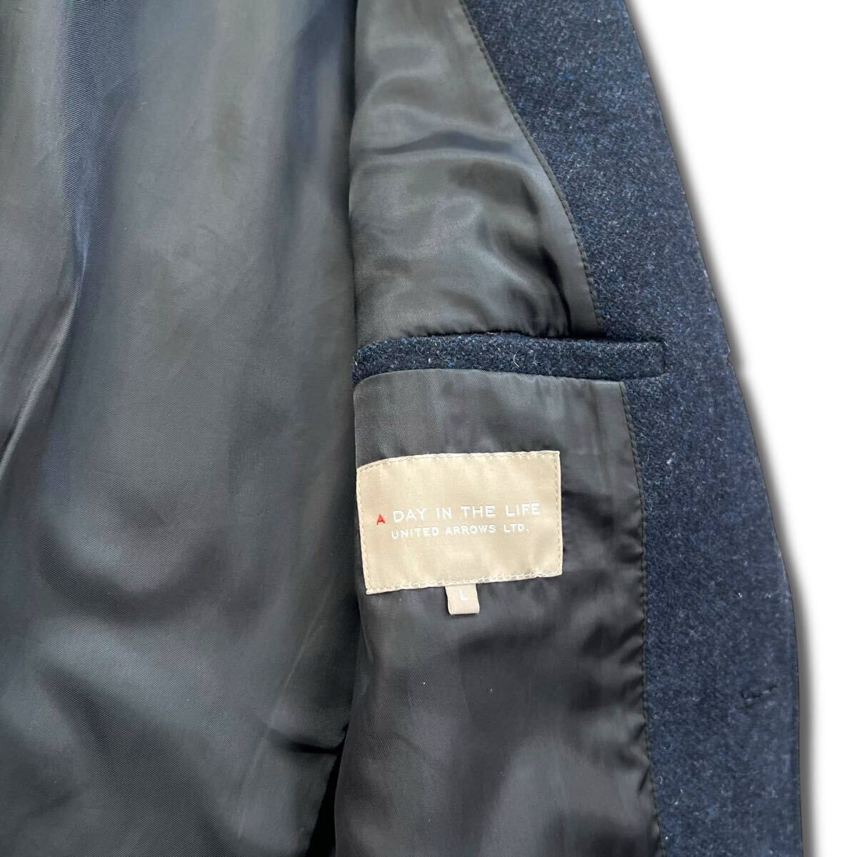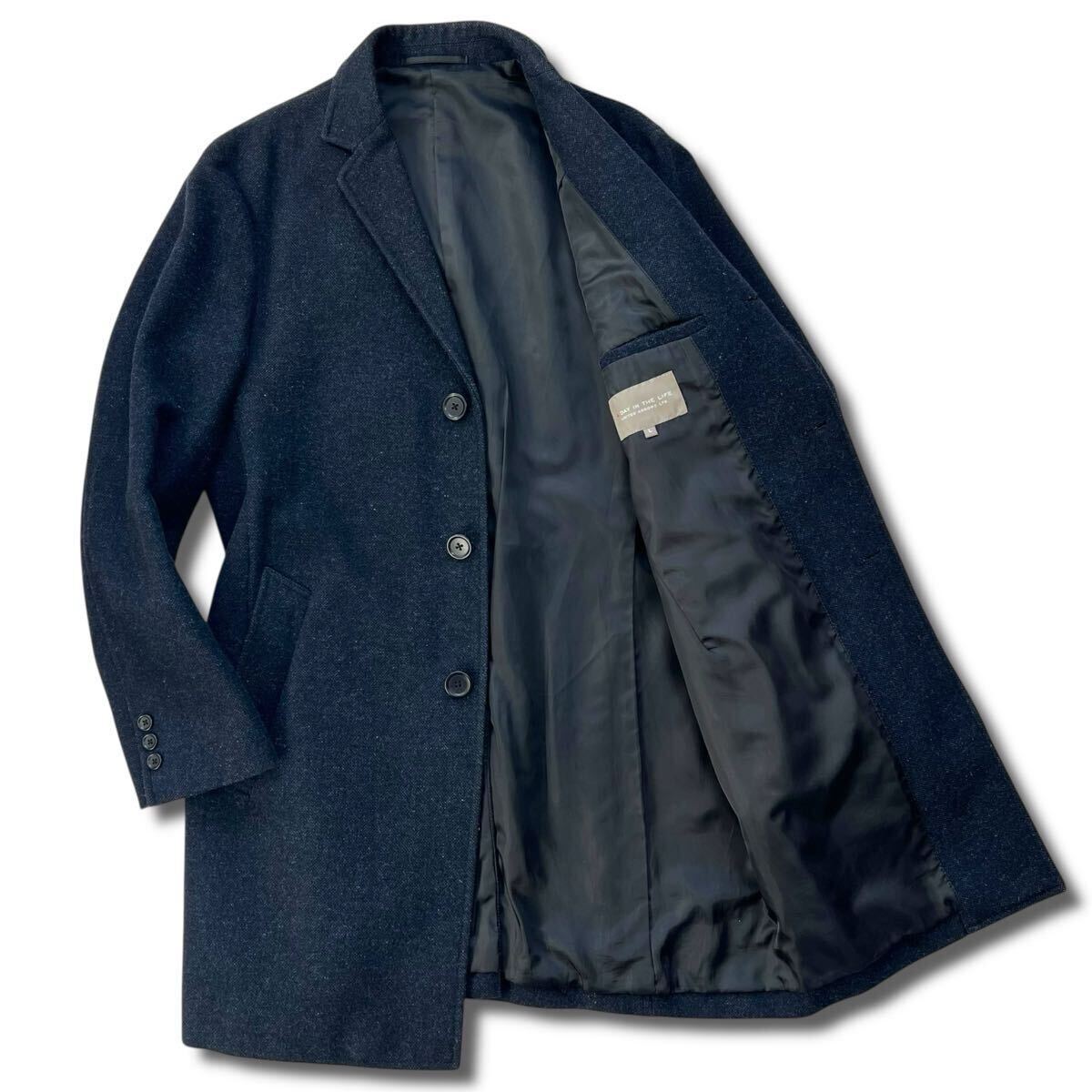 良品 UNITED ARROWS ツイード ウール チェスター コート L ネイビー ユナイテッド アローズ