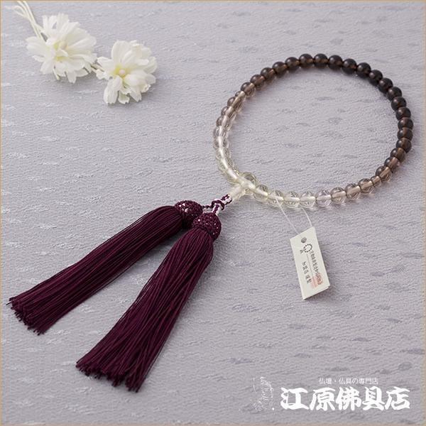 【京念珠/女性】茶水晶7ミリ(グラデーション) 正絹松風房〈極上品〉≪桐箱入り≫【念珠/数珠/女性】