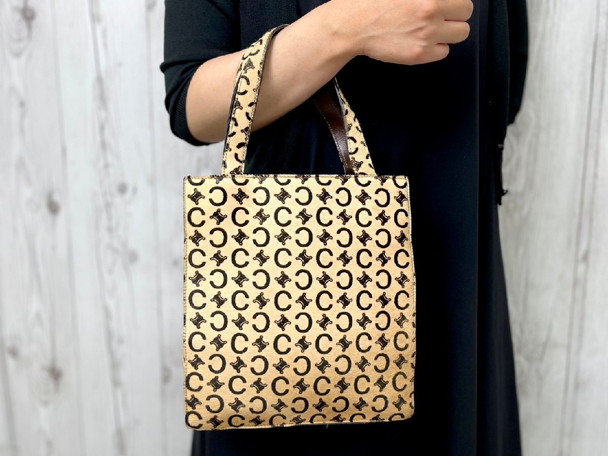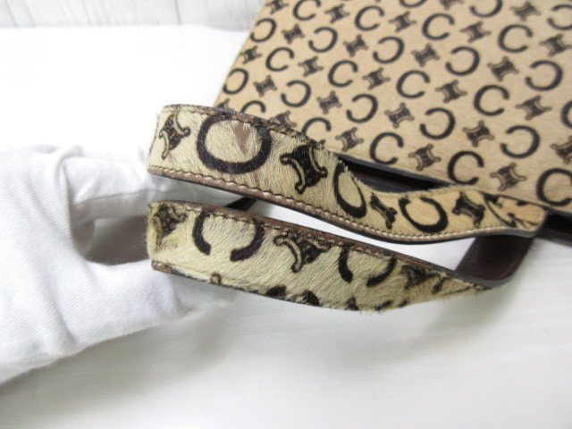 極美品 CELINE セリーヌ Cマカダム ハンドバッグ バッグ ハラコ×レザー 茶系 88317 | ||