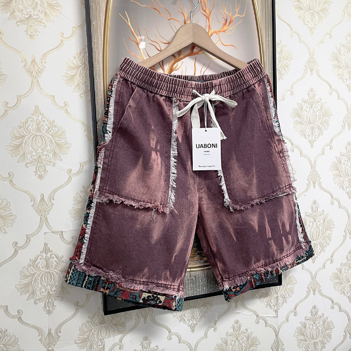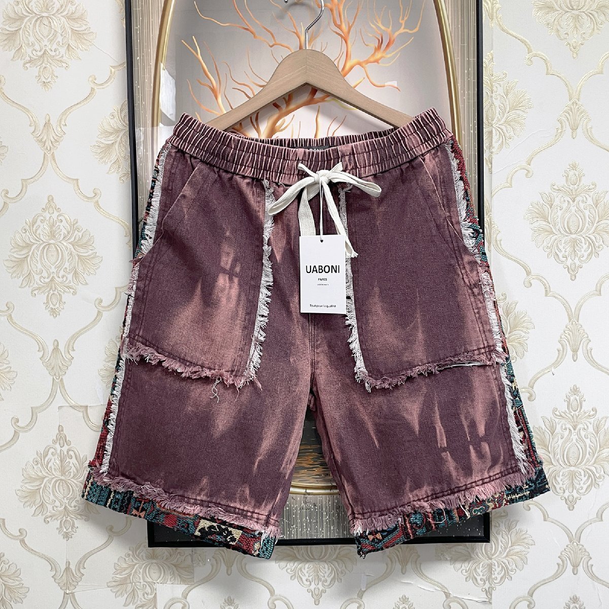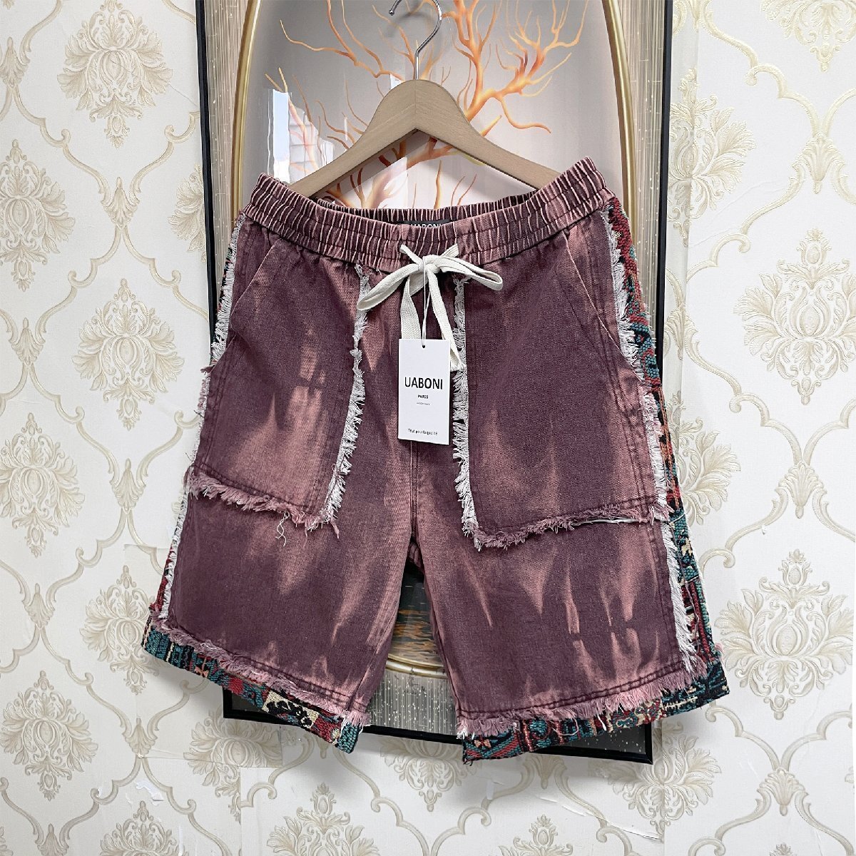 人気EU製&定価3万◆UABONI*Paris*ショートパンツ*ユアボニ*パリ発◆ソフト 快適 ダメージ加工 切替 デニム 短パン 半ズボン 夏 XL/50