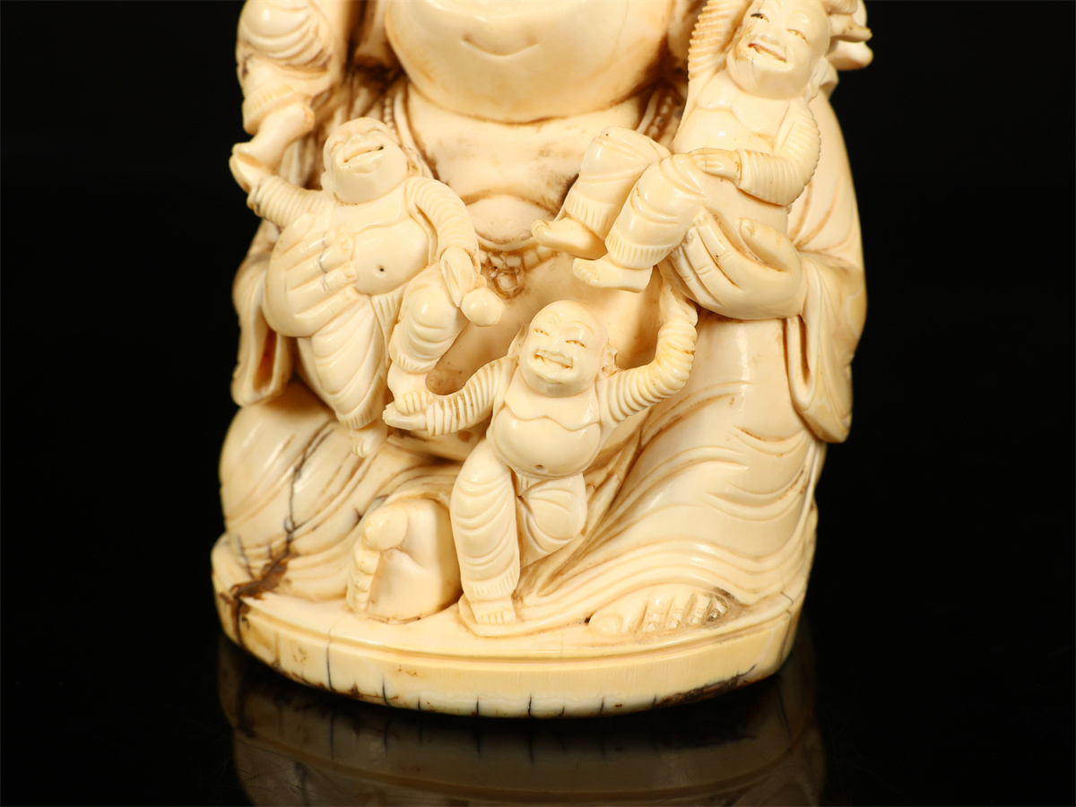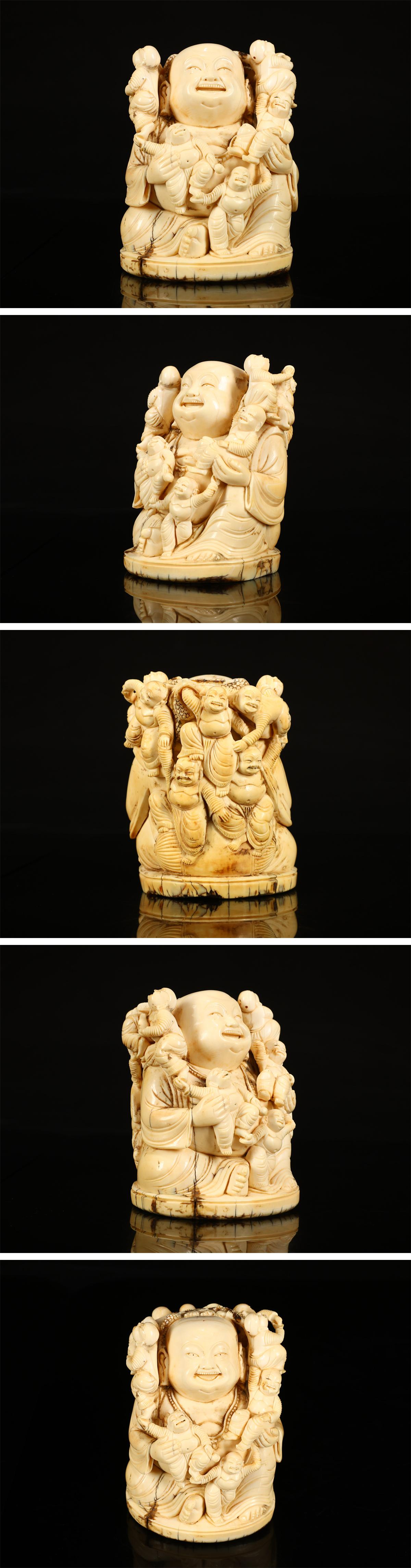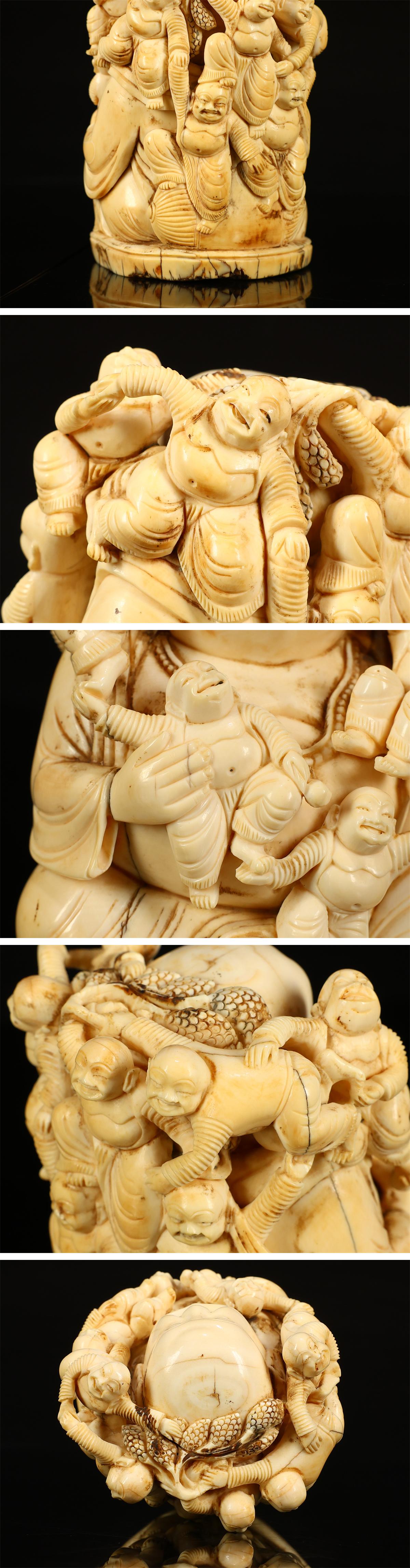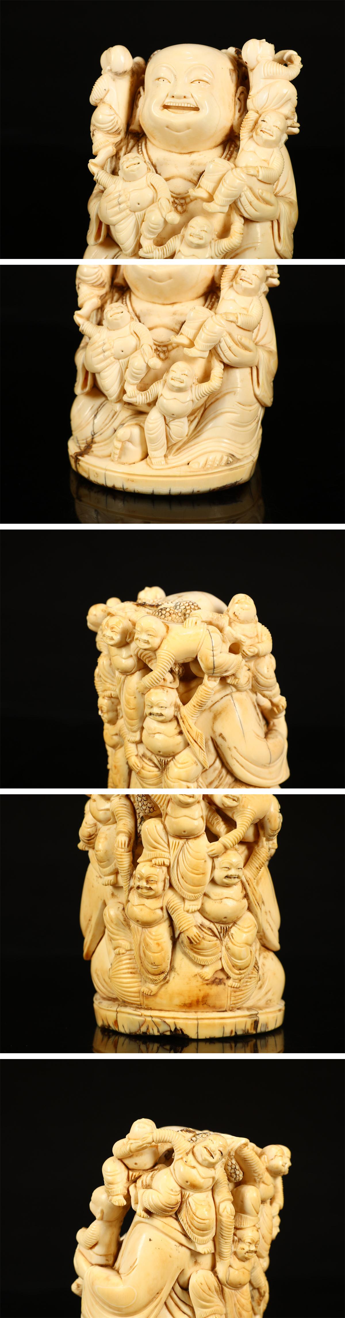 久1258 唐物 東洋彫刻 布袋 弥勒 置物 高12㎝ 径約8㎝ 重750g 時代の汚れありS